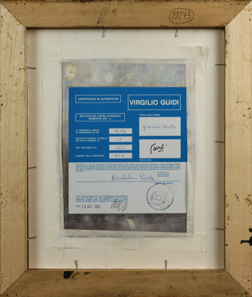 GUIDI VIRGILIO (ROMA 1891 VENEZIA 1984), Grande testa, Serigrafia su argento Anno 1984 Dim. 24x18 Esemplare XLV/CCL Al verso certificato di autenticità Firmato in basso a dx