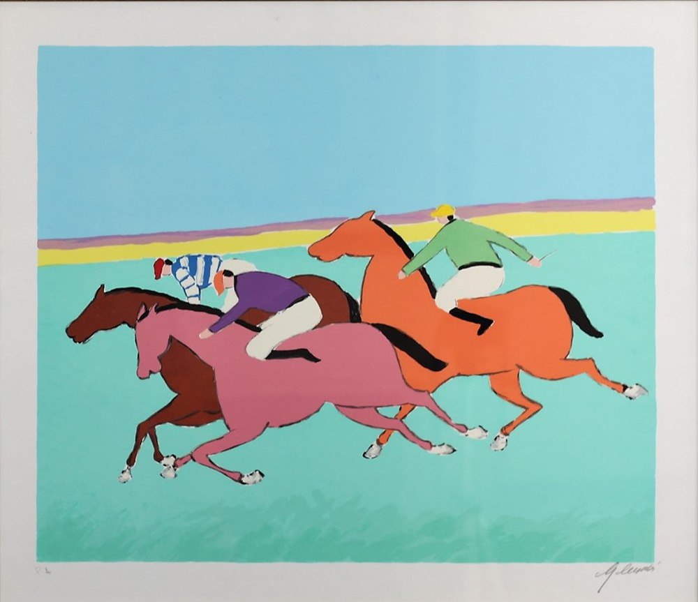 CESETTI GIUSEPPE (TUSCANIA 1902 1990), Cavalieri, Litografia su carta Anni 80 Dim. 60x70 Esemplare P.A. Tiratura in basso a sx Firmato in basso a dx