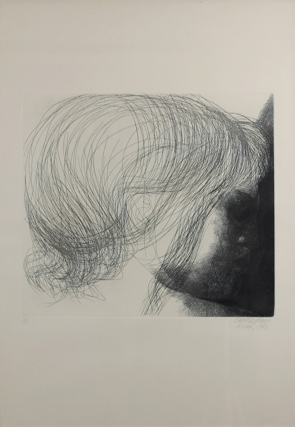 GRECO EMILIO (CATANIA 1913 ROMA 1995), Volto, Acquaforte Anno 1973 Dim. 75x53 Esemplare XI/XXX Tiratura in basso a sx Data, luogo e firma in basso a dx
