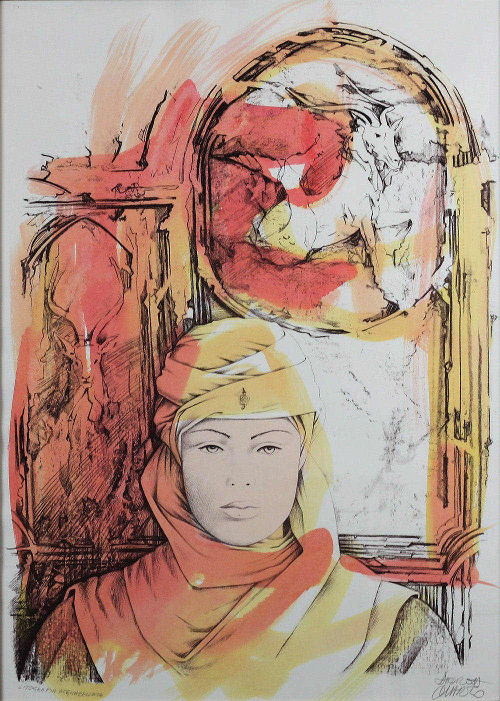 QUARTO ANDREA (LUCCA 1959), Il capricorno, Litografia acquarellata a mano Anno 1985 Dim. 70x50 Esemplare unico Firmato in basso a dx