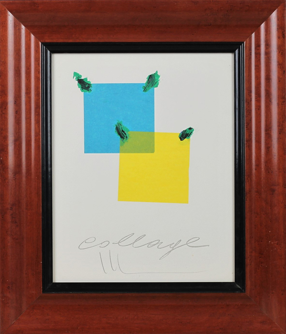 MONDINO ALDO (TORINO 1938 TORINO 2005), Collage, Collage su cartoncino Dim. 30x25 Esemplare multiplo Timbro a secco Bolaffi Firmato in basso al centro