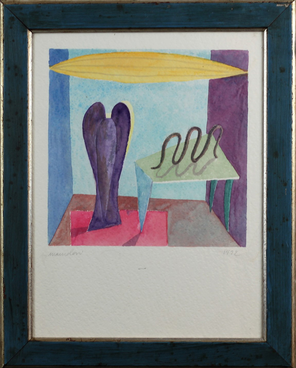 LOVI MAURO (LUCCA 1953), Interno metafisico, Acquerello su carta Anno 1992 Dim. 38x30 Datato in basso a dx Firmato in basso a sx