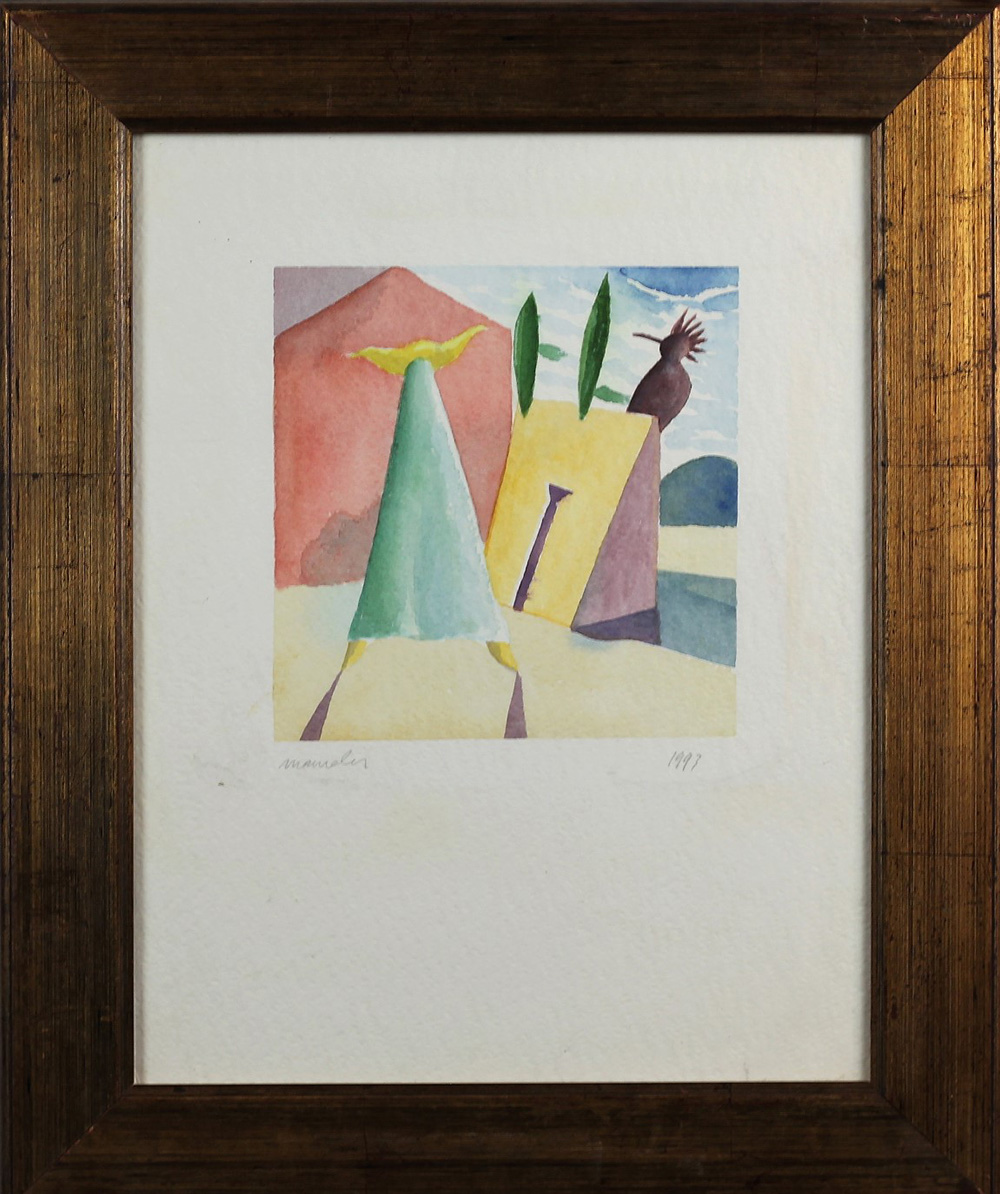 LOVI MAURO (LUCCA 1953), Paesaggio fantastico, Acquerello su carta Anno 1993 Dim. 38x30 Datato in basso a dx Firmato in basso a sx