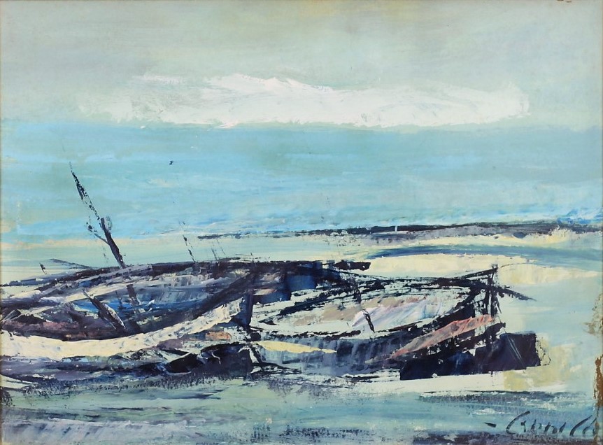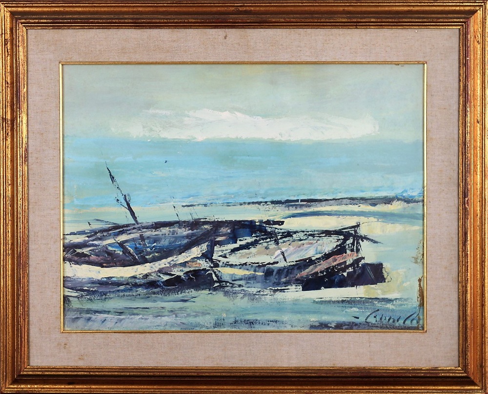Lot 376 | MARTINELLI GIUSEPPE (VIAREGGIO 1930 MILANO 2016), Barche, Olio su tavola Dim....