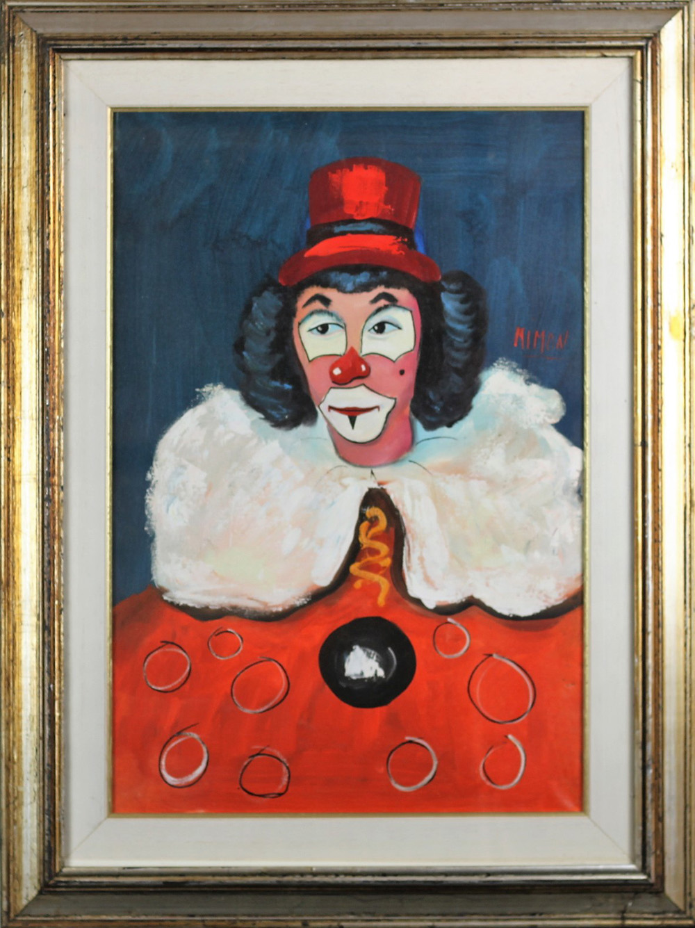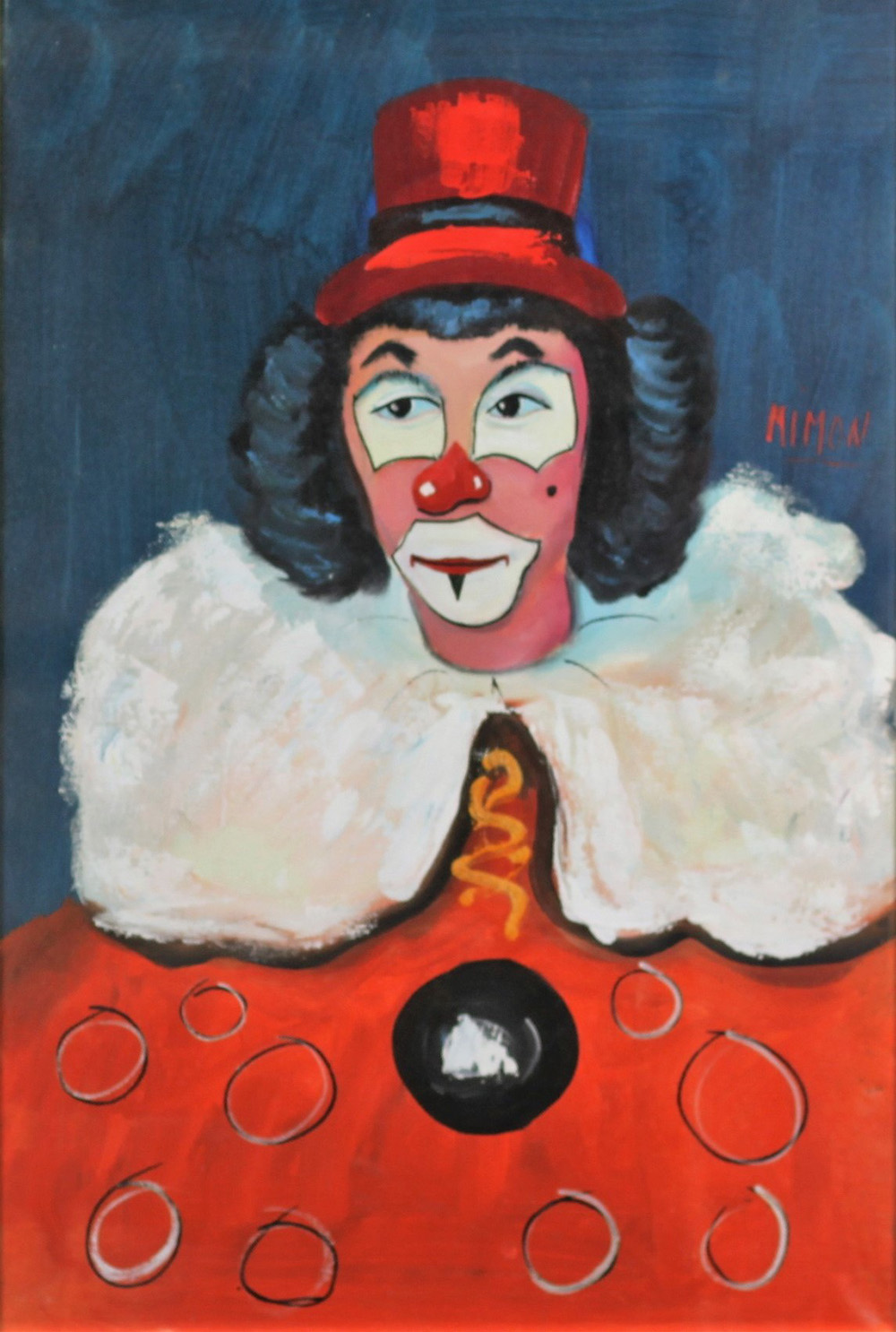 MIMON, Clown, Olio su tela Anni 80 Dim. 60x40 Firmato in alto a dx