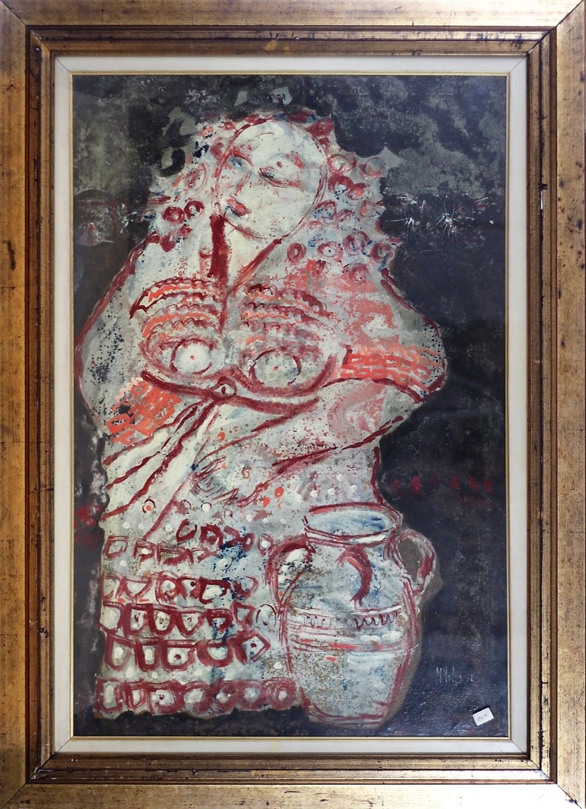 Lot 430 | VOLPE MICHELE (SAVIGNANO IRPINO 1941), Donna con anfora, Tecnica mista su...
