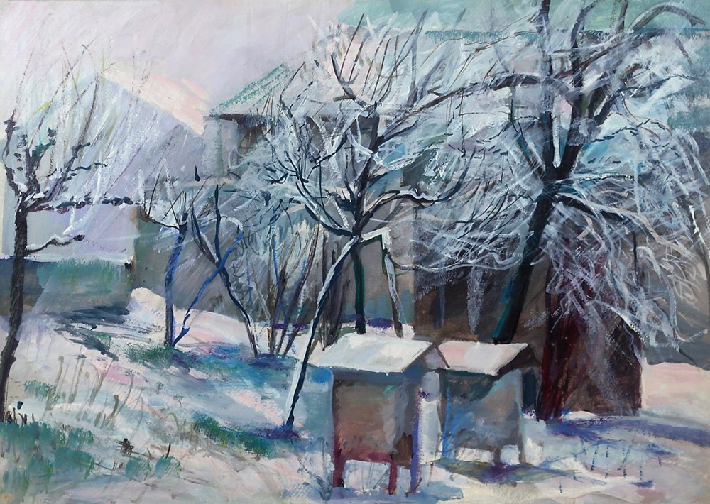 VERGAGNANO CESARE, Brinata, Olio su cartone Anno 1966 Dim. 50x70 Al verso autentica dell'Autore