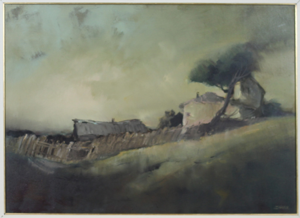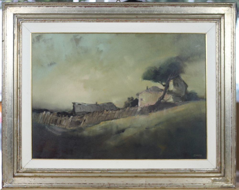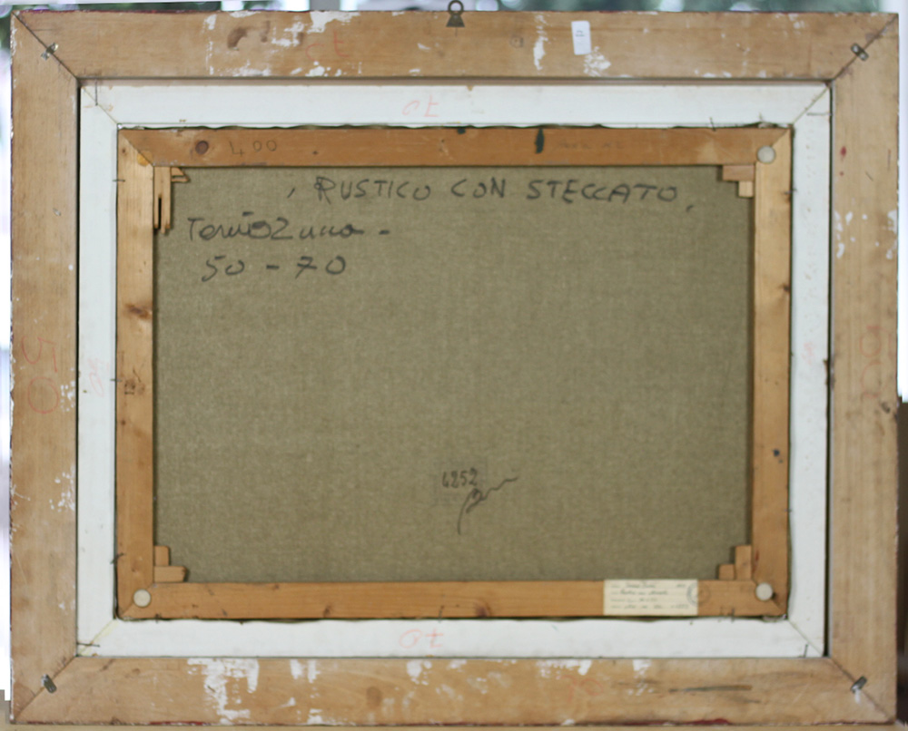 ZUCCA TERESIO (1926 2016), Rustico con steccato, Olio su tela Anno 1975 Dim. 50x70 Al verso titolo e firma Firmato in basso a dx