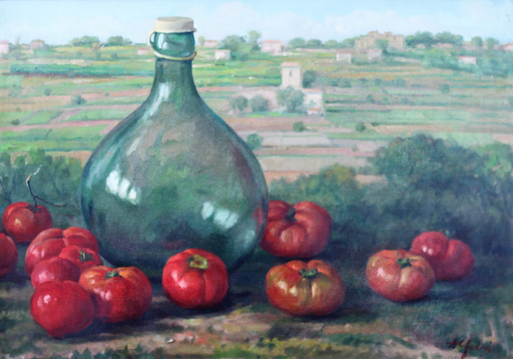 ALFIERI MANLIO (TARQUINIA 1909 GAETA 1991), Natura morta nel paesaggio, Olio...