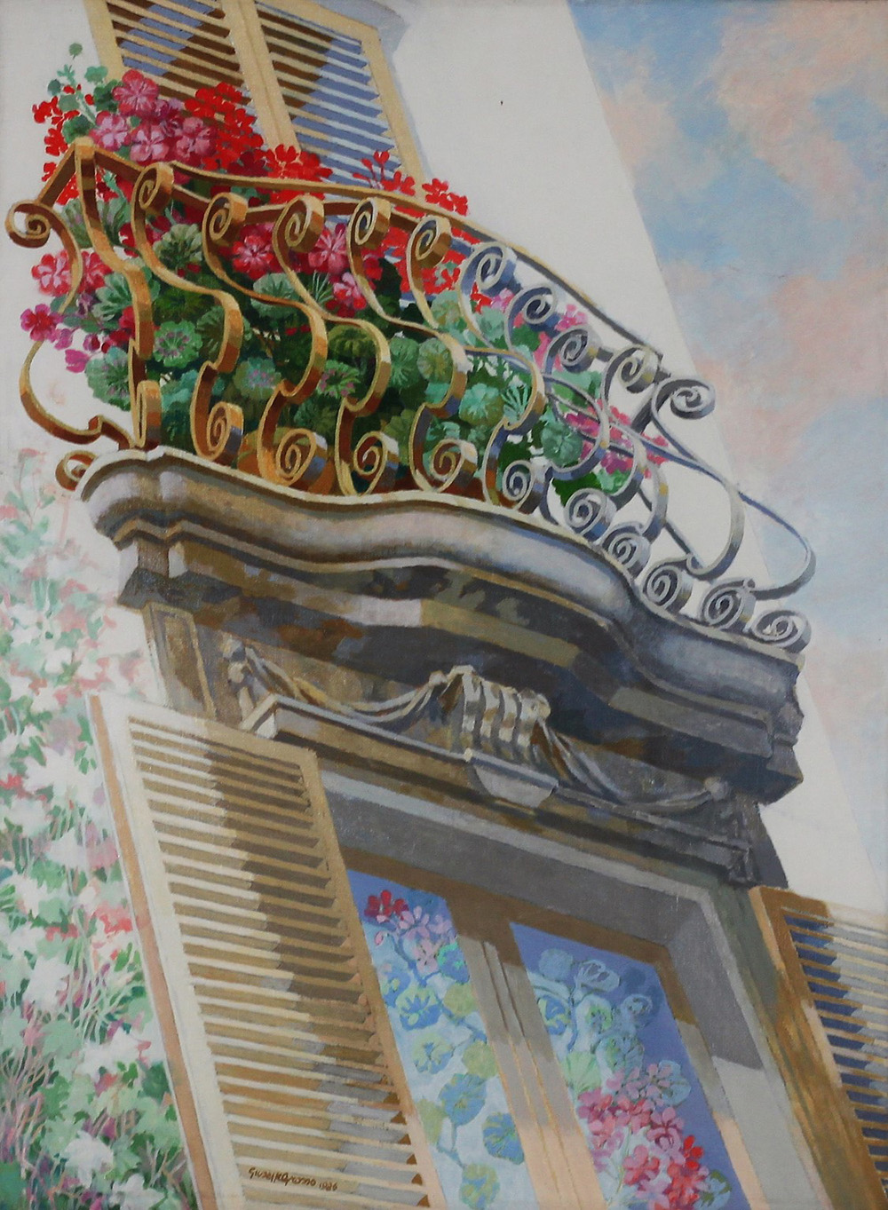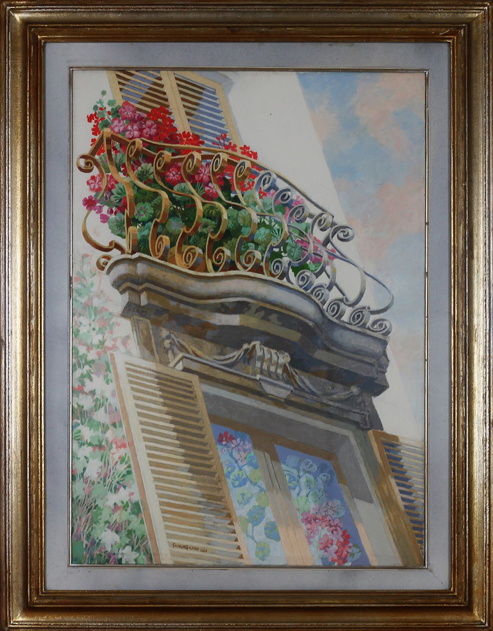 GROSSO GIUSEPPE (TORINO 1925), Balcone fiorito, Olio su tela Anno 1981 Dim....