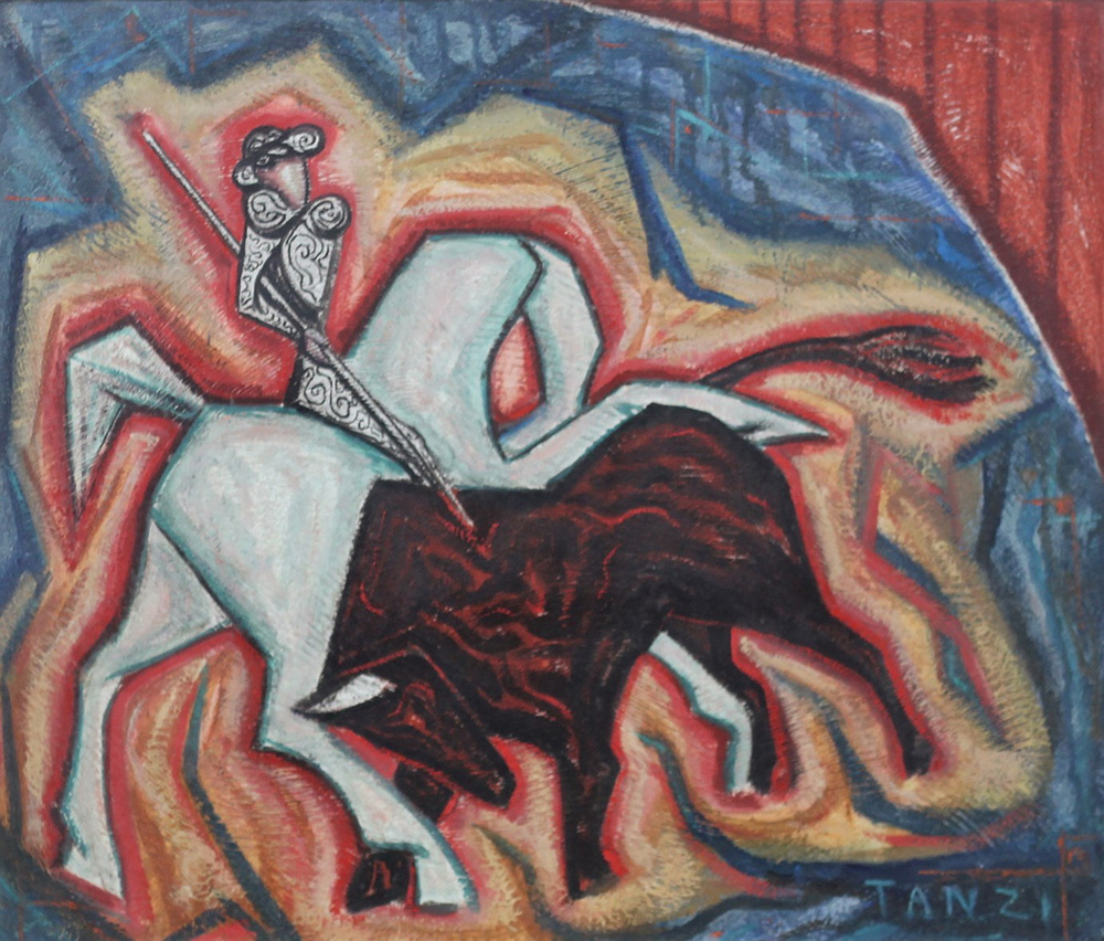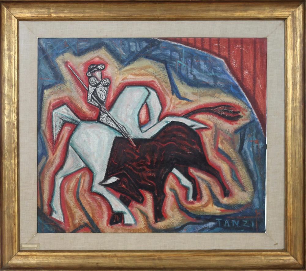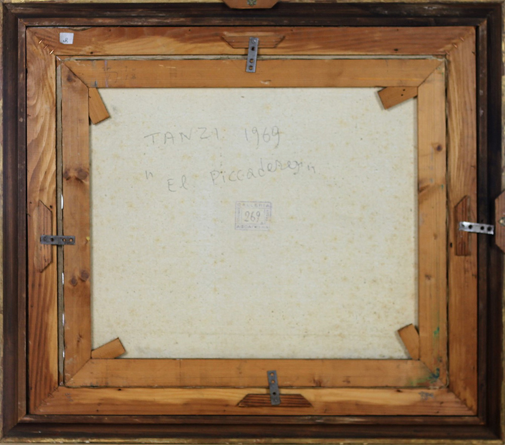 TANZI GAETANO (GENOVA 1918 GENOVA 2017), El piccaderos, olio su tela Anno 1969 Dim. 55x65 Al verso titolo, data e firma Firmato in basso a dx