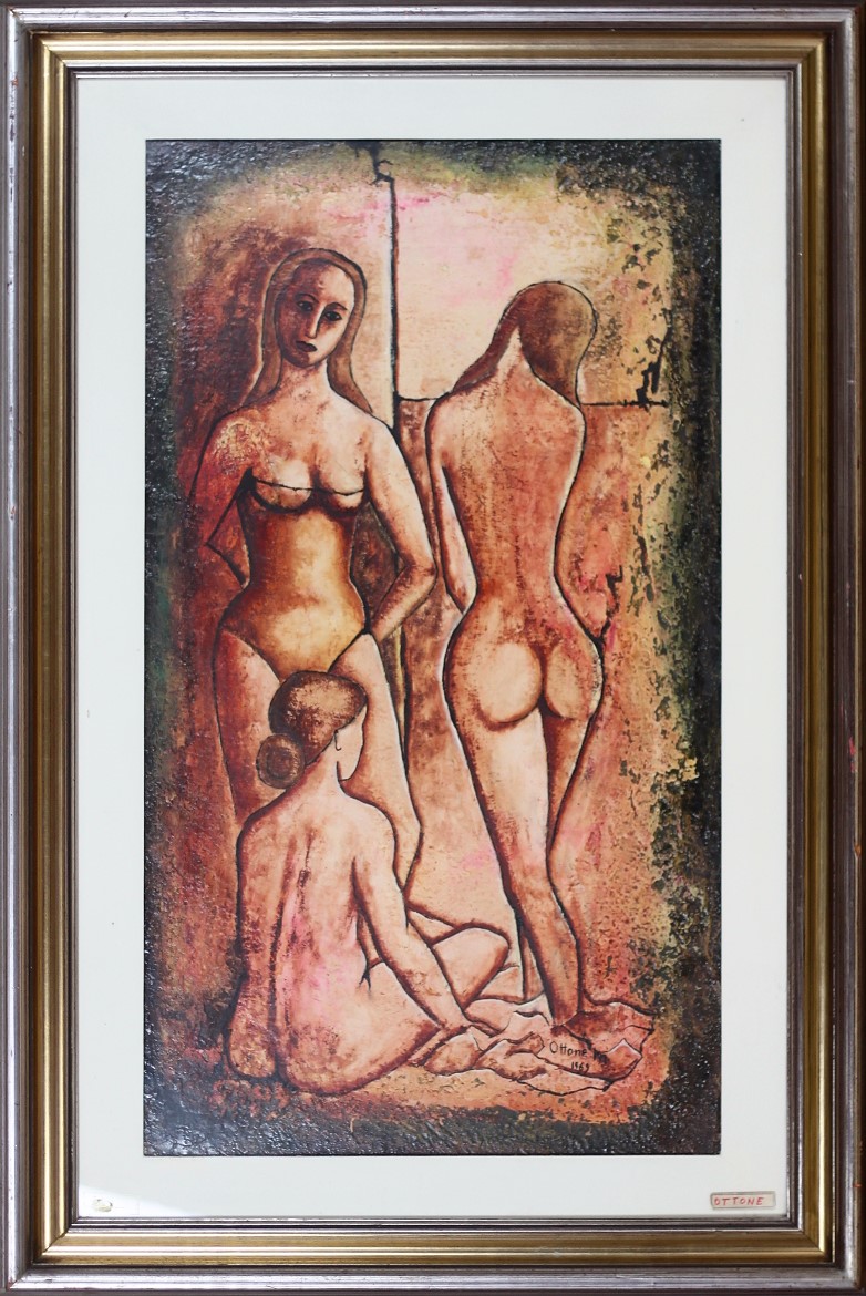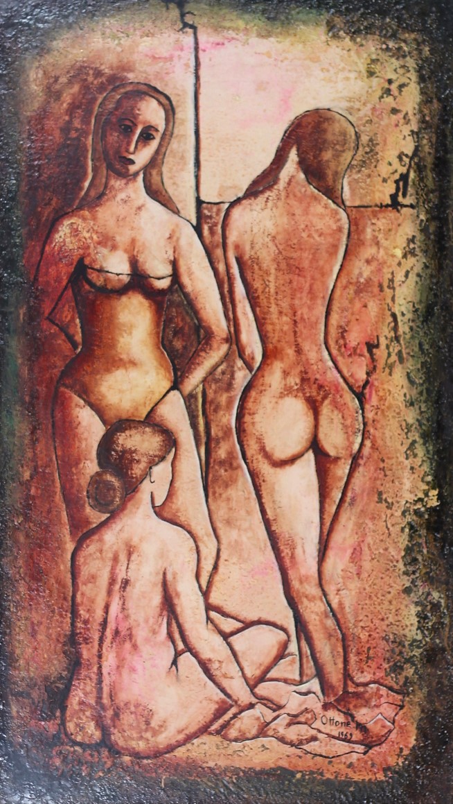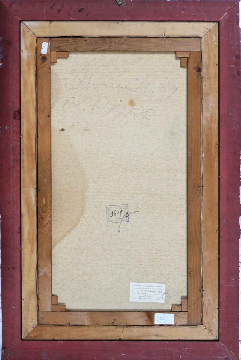 MARIGO OTTONE, Al mare, Olio su tela Anno 1969 Dim. 80x45 Al verso titolo, data e firma Datato e firmato in basso a dx
