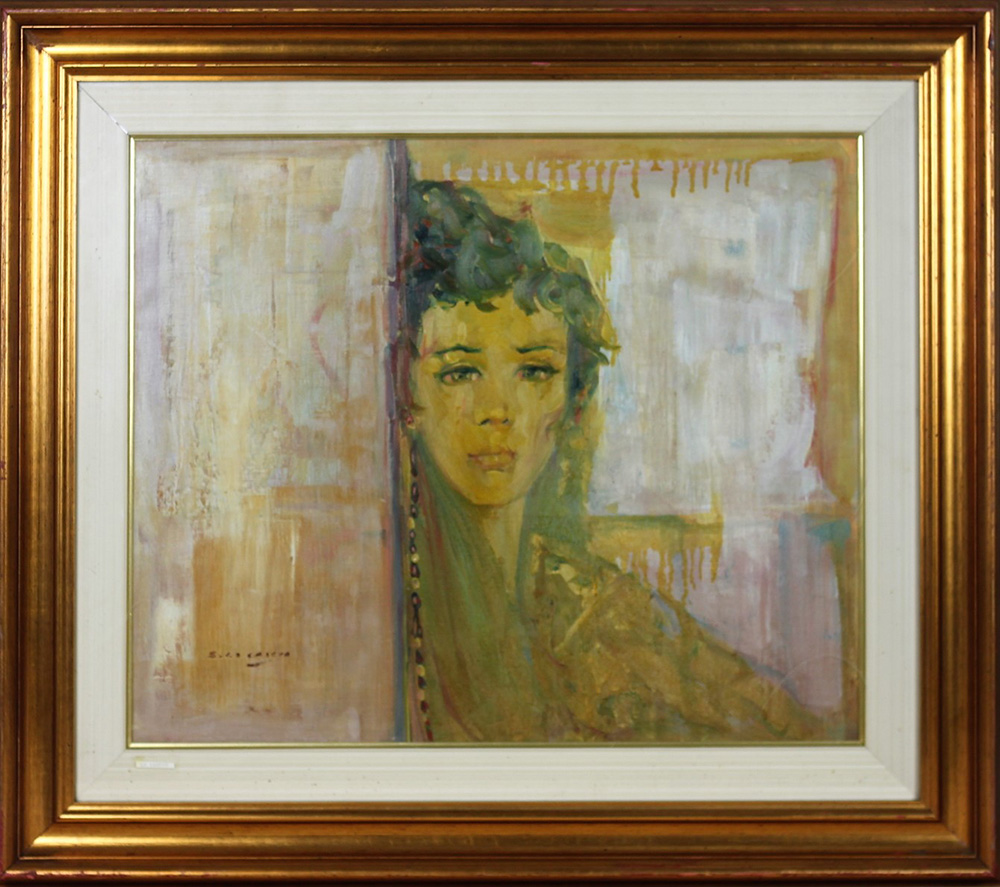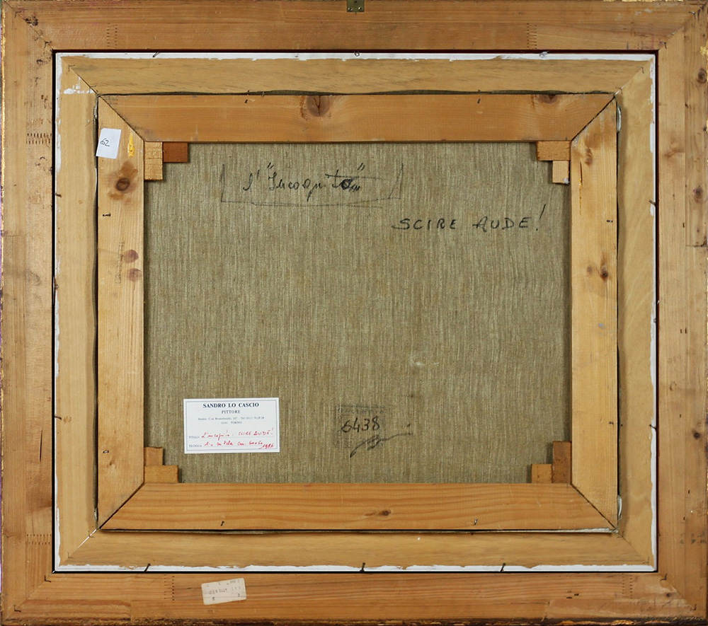 LO CASCIO SANDRO (TORINO 1932 TORINO 1991), L'incognita, Olio su tela Anno 1976 Dim. 50x60 Al verso titolo Firmato in basso a sx