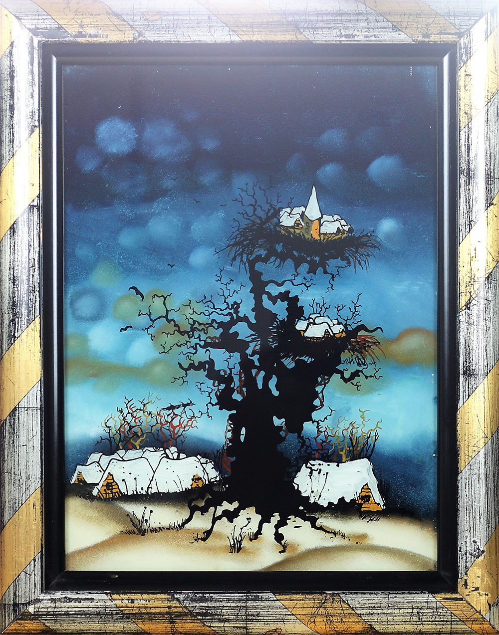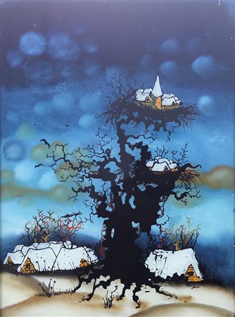 MARAS M., Composizione, Olio su vetro Anno 1977 Dim. 38x28