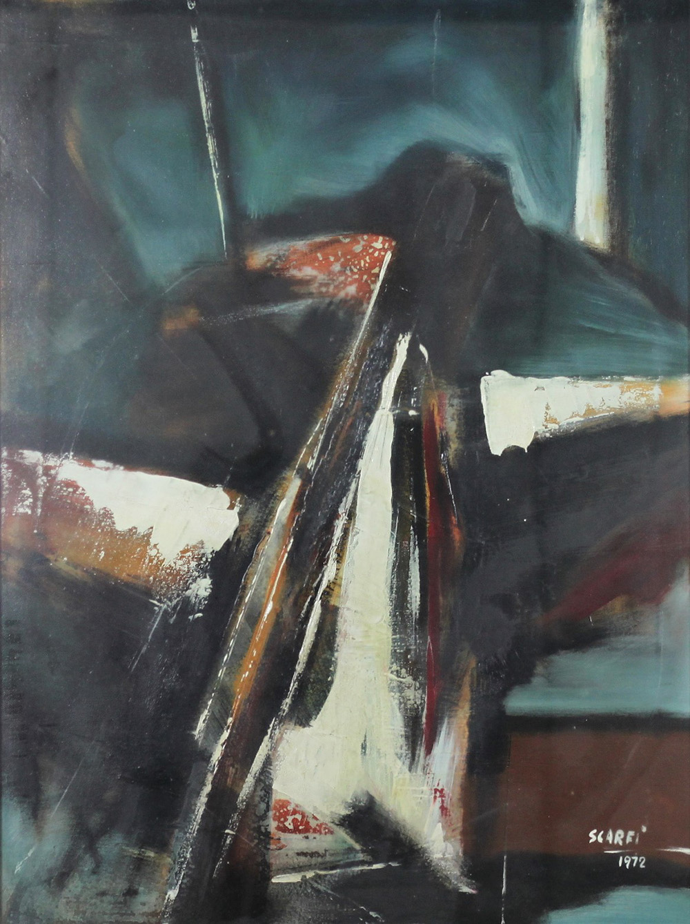 Lot 510 | SCARFI' ATTILIO (ARONA 1931 ARONA 2016), Dall'alto, Olio su tela Anno 1972...
