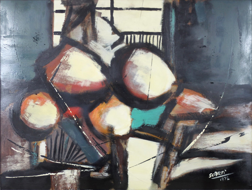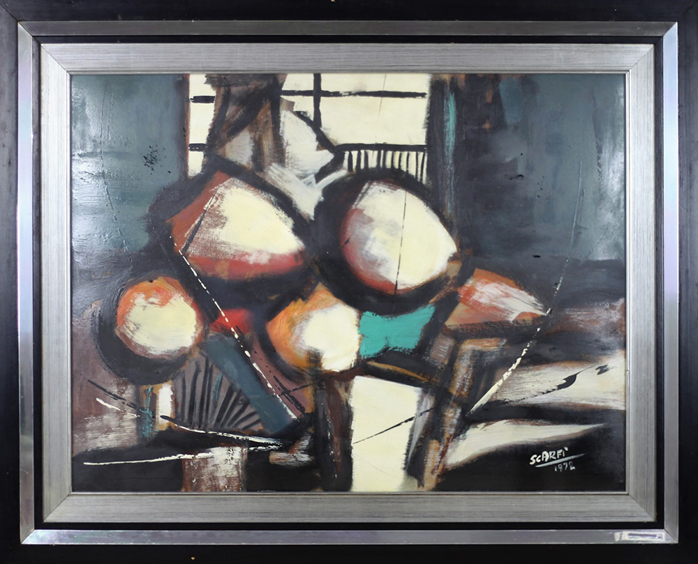 SCARFI' ATTILIO (ARONA 1931 ARONA 2016), Natura morta, Olio su cartone Anno 1972 Dim. 60x80 Firmato e datato in basso a dx