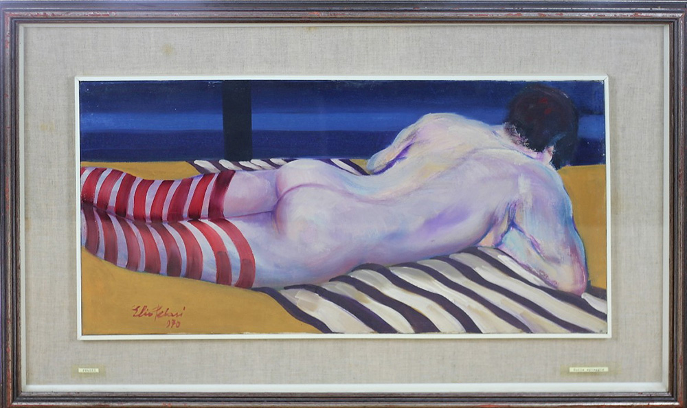 PELOSI ELIO, Sulla spiaggia, Olio su tela Anno 1970 Dim. 30x60 Datato e firmato in basso a sx