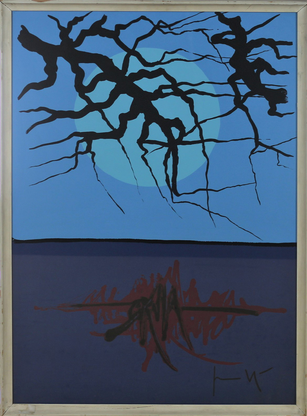 Lot 550 | ANONIMO, Composizione blu, Tecnica mista su cartone Dim. 70x50 Firmato in...