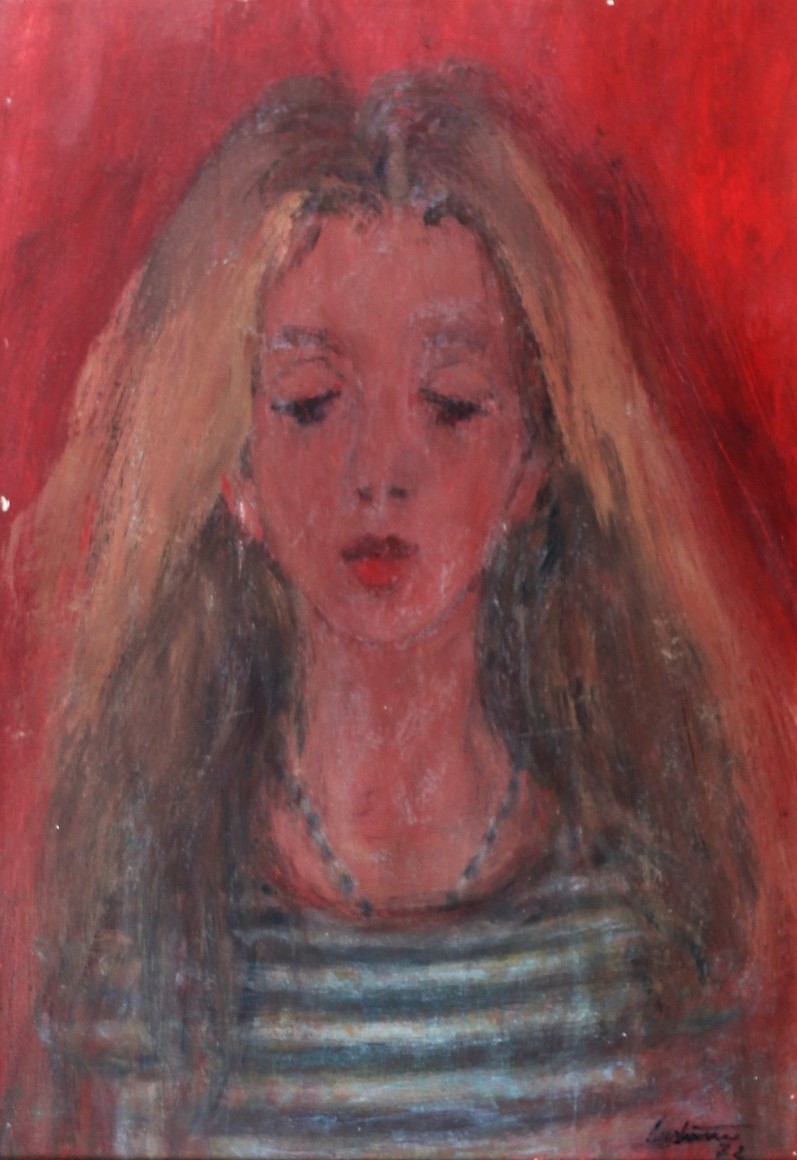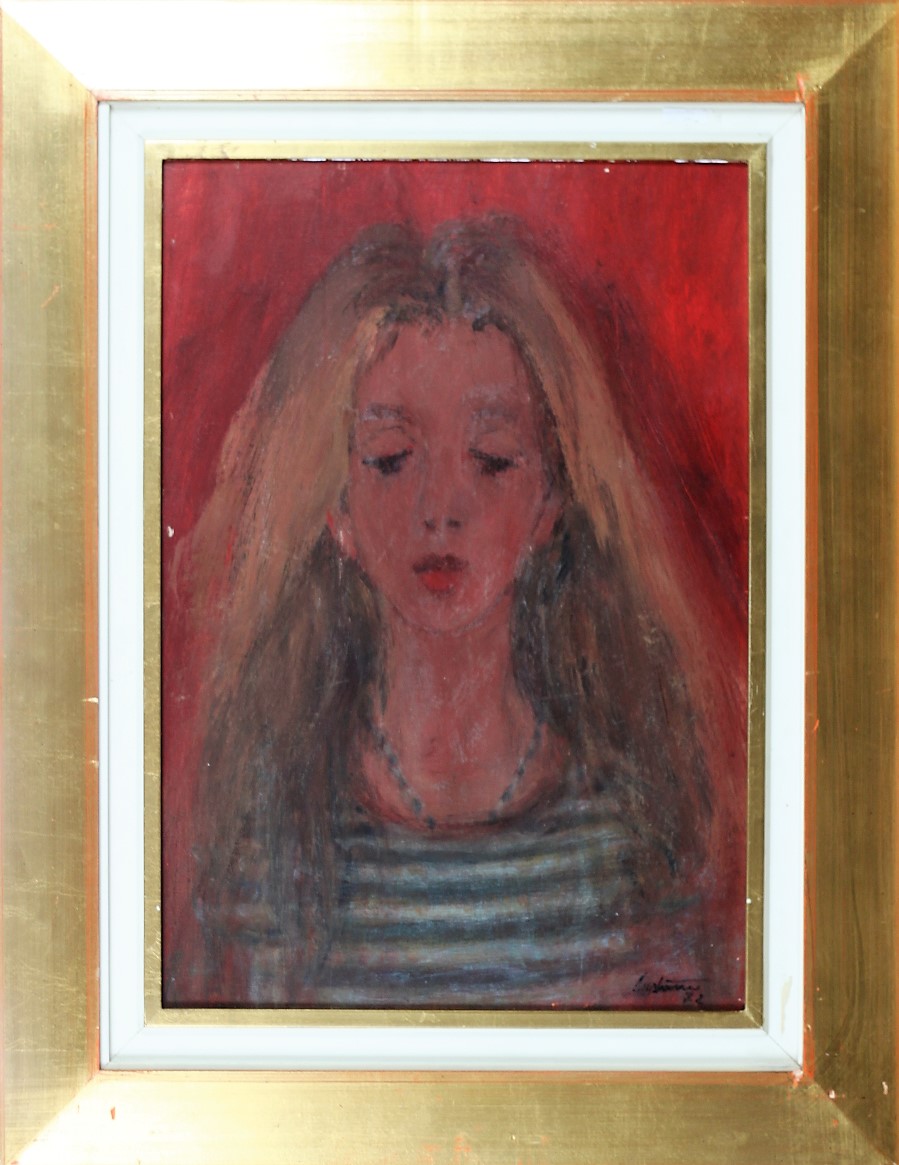 CASTANO ALDO (NOVARA 1922 PINO TORINESE 1976), Piccola donna, Olio su carta - tavola Anno 1972 Dim. 50x35 Firmato e datato in basso a dx