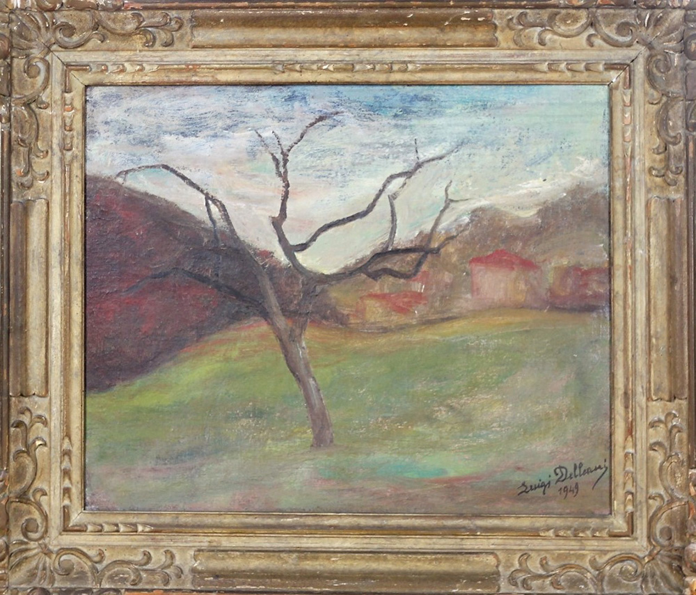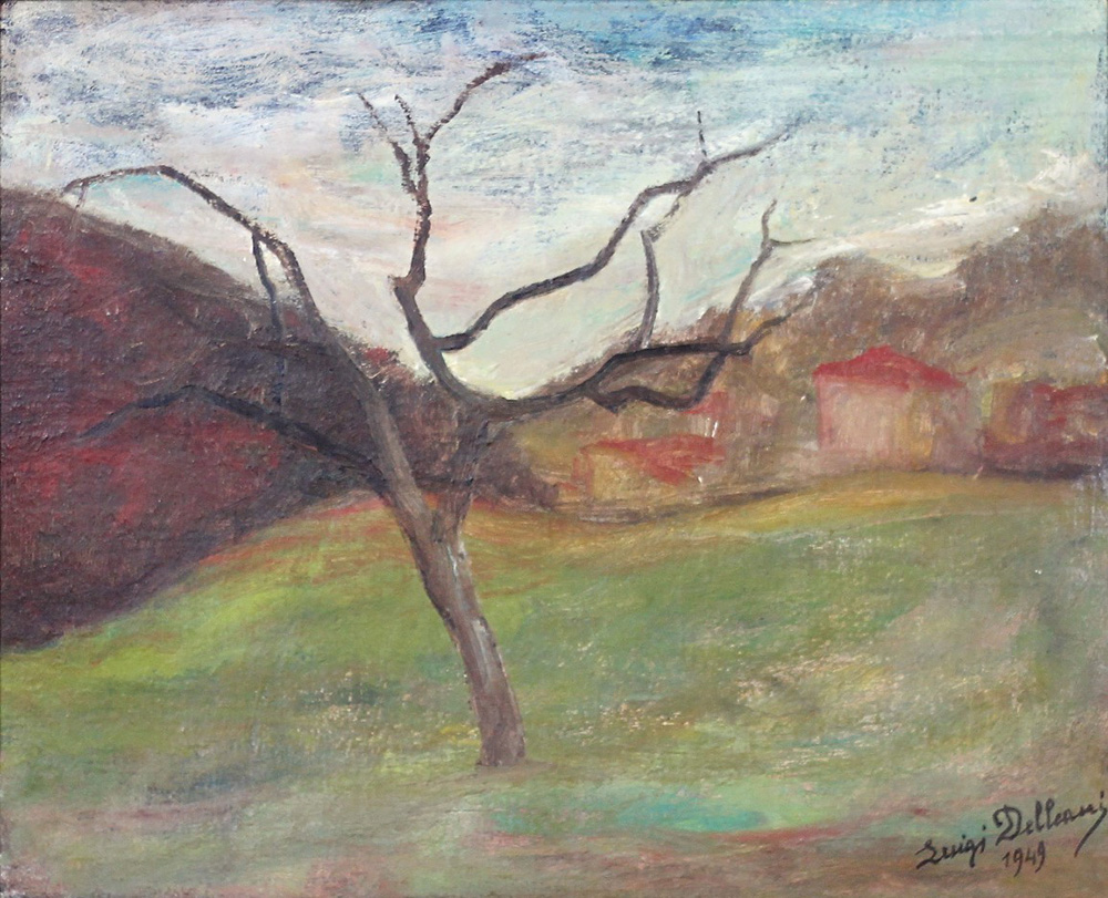 DELLEANI GIUSEPPE, Altipiano di Valsalice, Olio su tela Anno 1949 Dim. 40,5x50 Al verso titolo, data e firma Firmato edatato in basso a dx