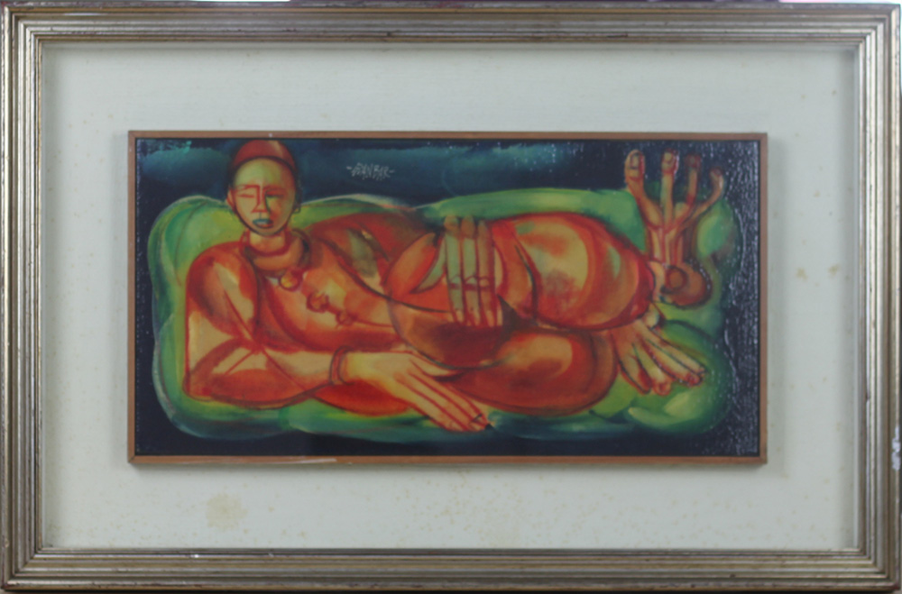 GIANBAR (TORINO 1938), Presenza, Olio su tela su tavola Anno 1980 Dim. 22x44 Firmato in alto al centro