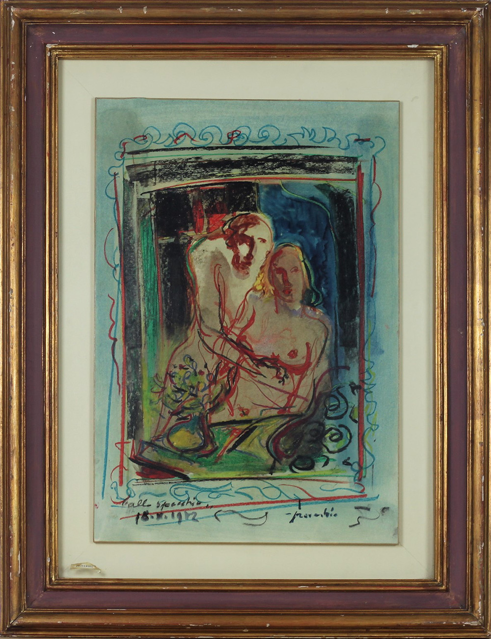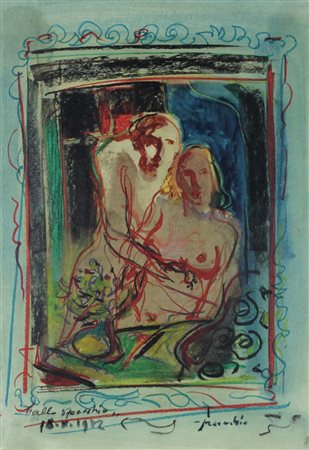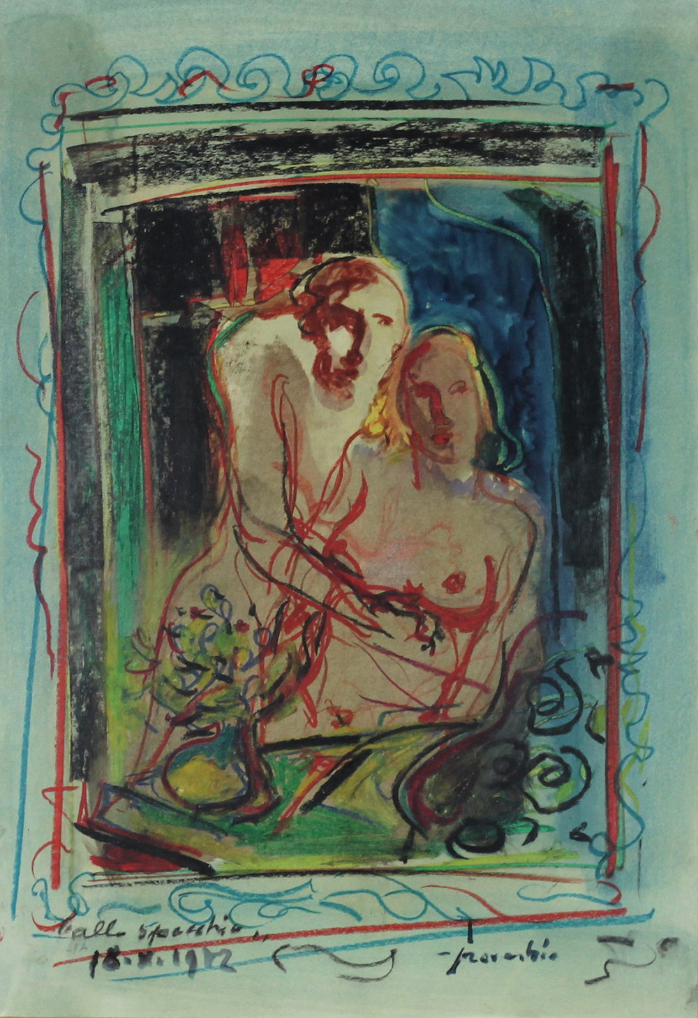 PROVERBIO LUCIANO (ALESSANDRIA 1936 TORINO 2009), Allo specchio, Olio su carta su tavola Anno 1972 Dim. 64x44 Titolo e data in basso a sx Firmato in basso a dx