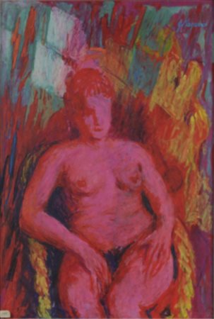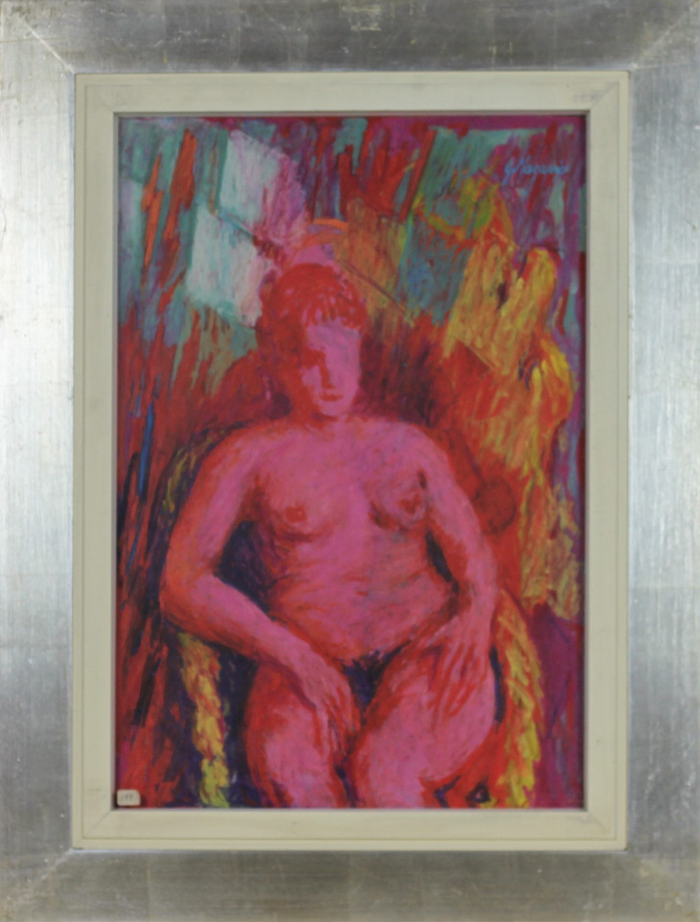 NAZARIO GAUDENZIO (VERCELLI 1934), Nudo rosa, Pastelli a olio su cartoncino Anno 1973 Dim. 56x38 Firmato in alto a dx