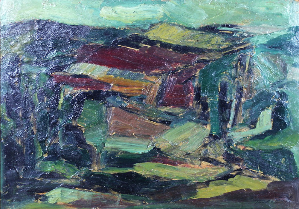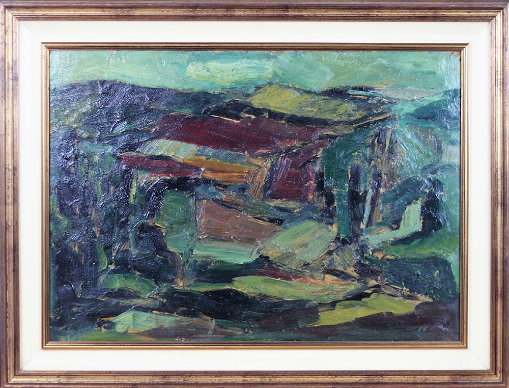 TUNINETTO ADRIANO (PANCALERI 1930 TORINO 2004), Langhe, Olio su cartone Anno 1954 Dim. 50x70 Firmato in basso a dx