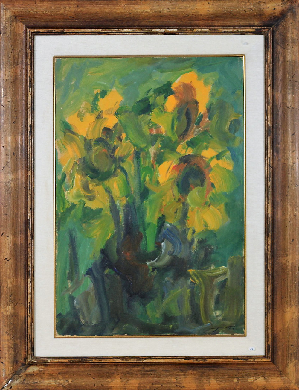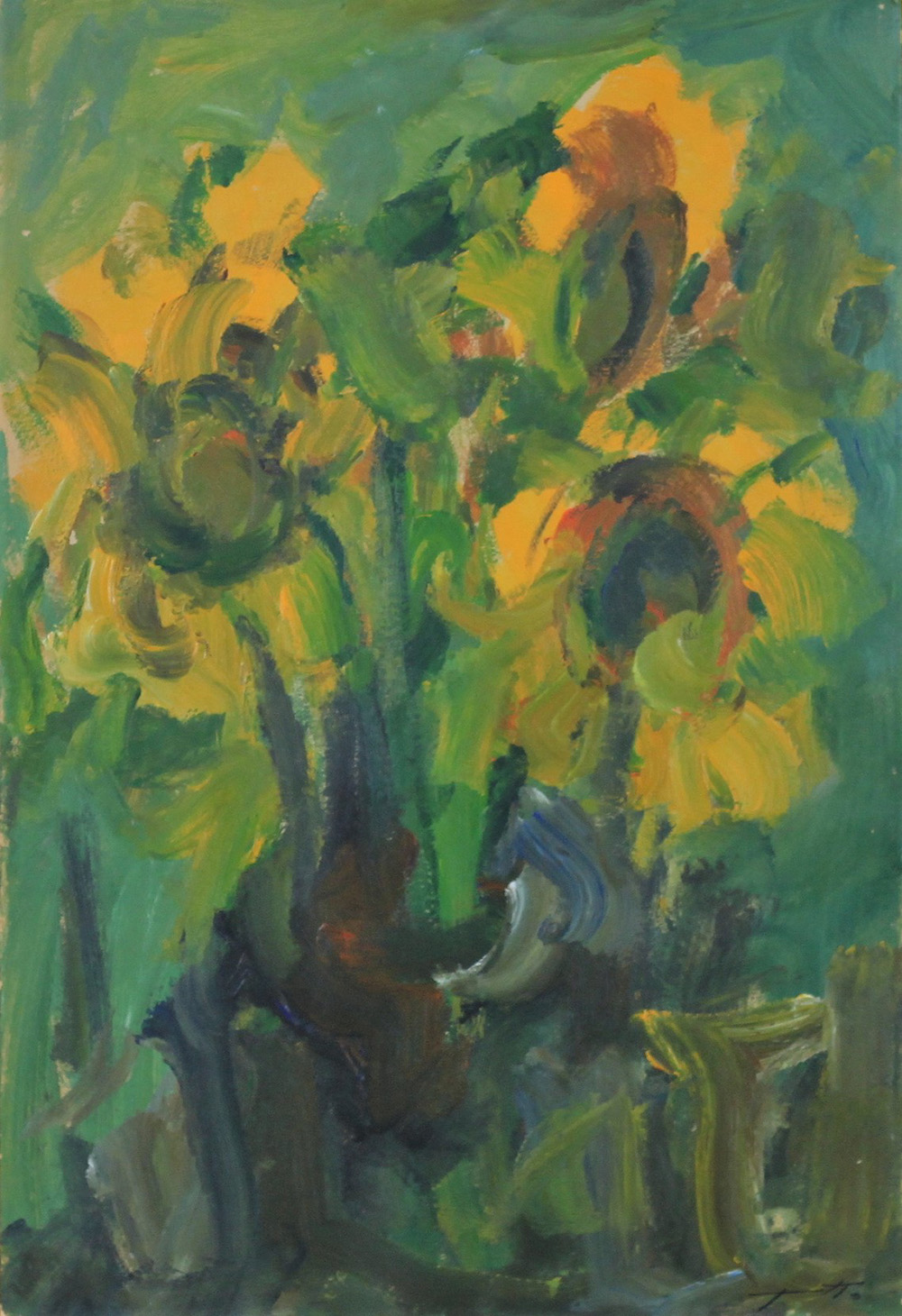 TUNINETTO ADRIANO (PANCALERI 1930 TORINO 2004), Girasoli, Olio su cartone Anno 1978 Dim. 60x40 Firmato in basso a dx