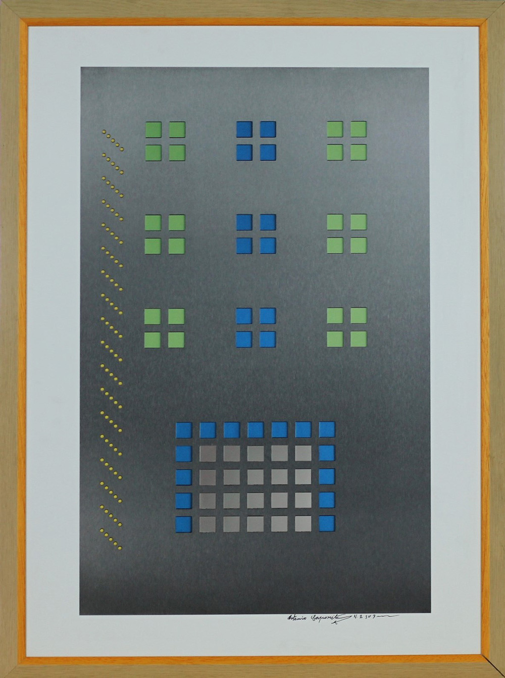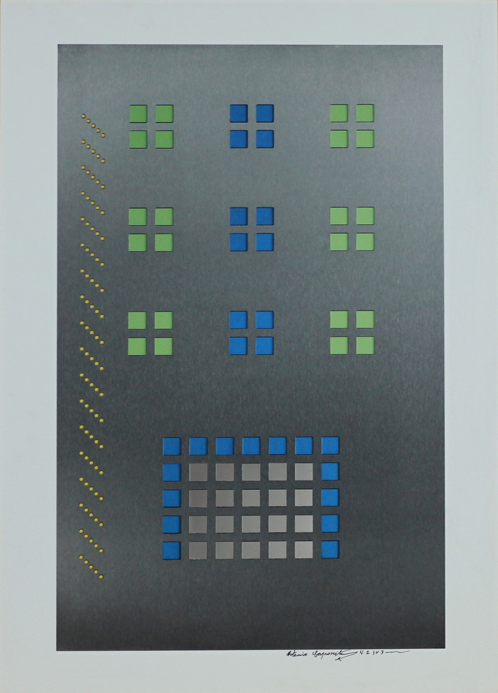 SAPORITO ANTONIO (ROCCHETTA SAN ANTONIO 1940), N.2 su tre, Serigrafia su forex Anno 2014 Dim. 70x50 Titolo e firma in basso