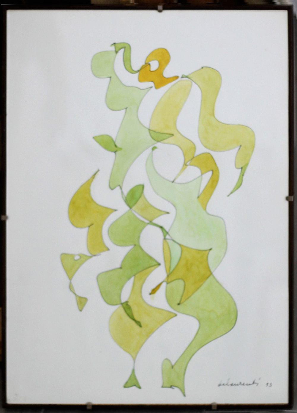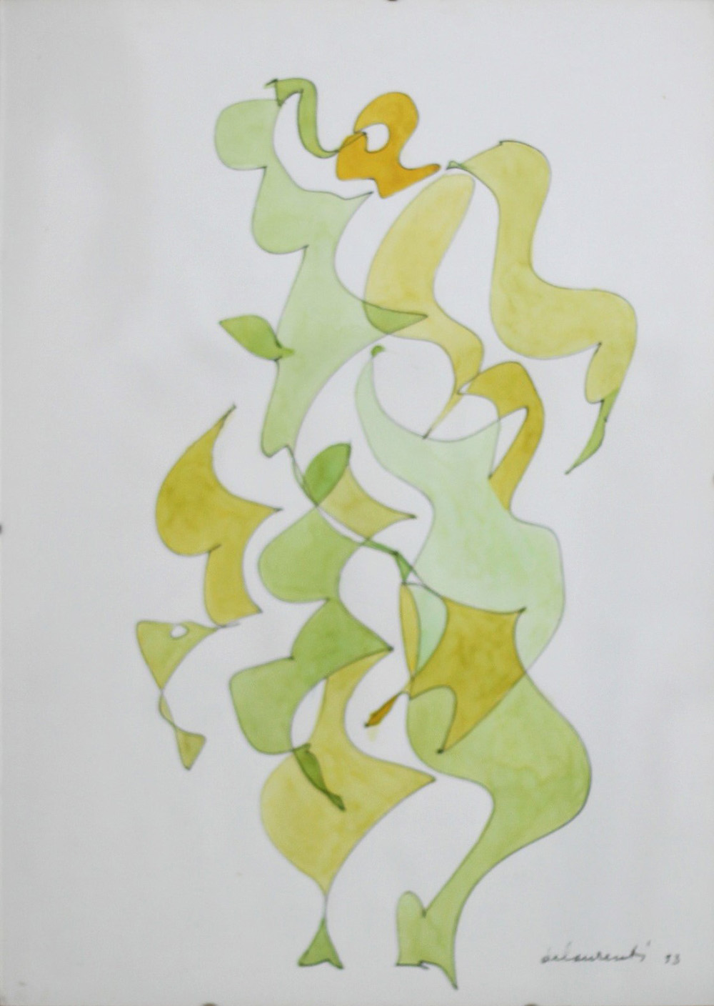 DELAURENTI SERAFINO (TORINO 1922 TORINO 1966), Composizione, China e acquerello su carta Anno 1993 Dim. 40x30 Firmato e datato in basso a dx