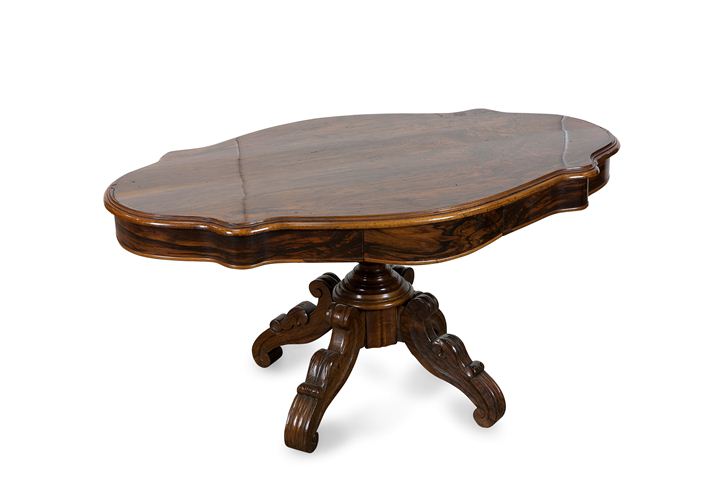 TAVOLINO Tavolino a fagiolo di forma mossa in noce, epoca XIX secolo;...