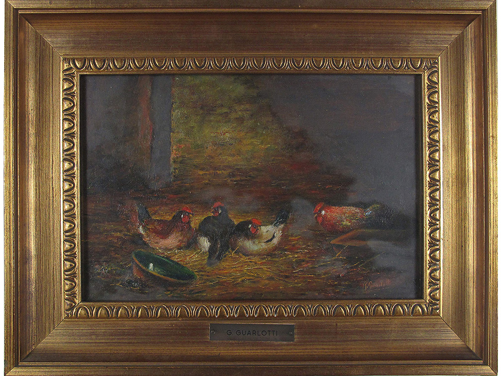 Giovanni Guarlotti (1869–1954) Pollaio 20x30 cm Olio su tavola