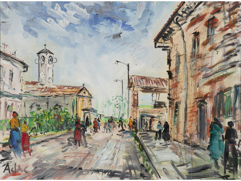 Aldo Colombo detto da Cortiana (1908 -?) Paesaggio con figure 60x80 cm Olio...
