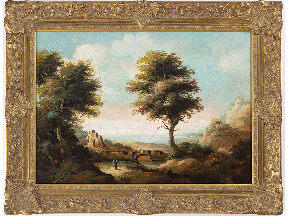 Anonimo (XX secolo) Paesaggio con figura e rovine 50x70 cm Olio su tela