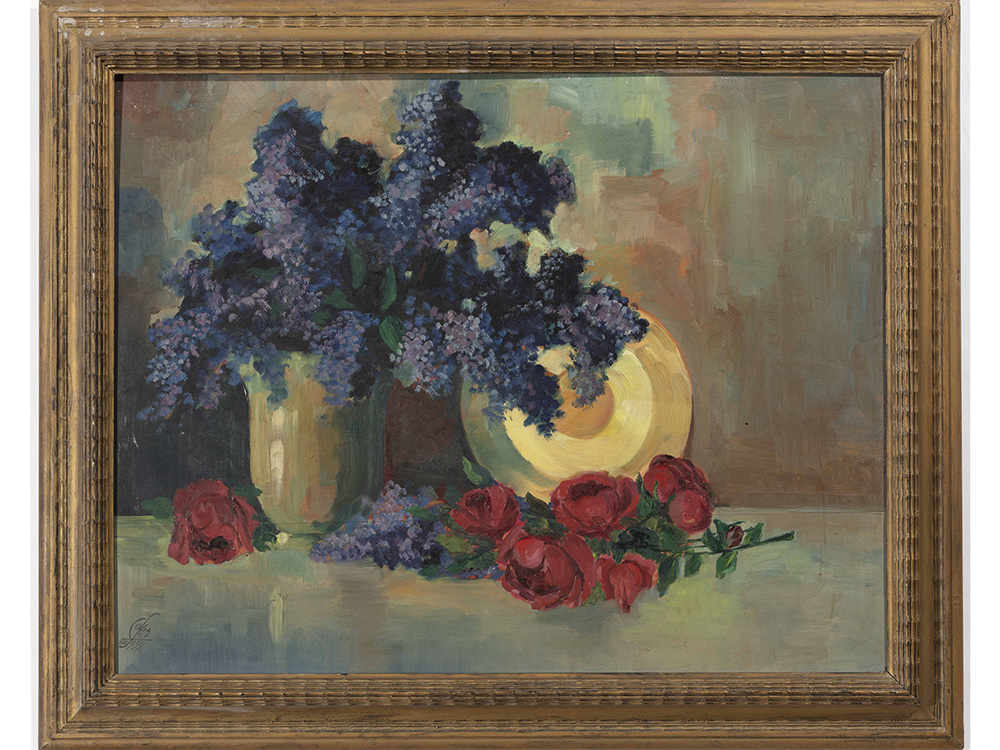 Firma illeggibile (XX secolo) Natura morta 53x68 cm Olio su compensato