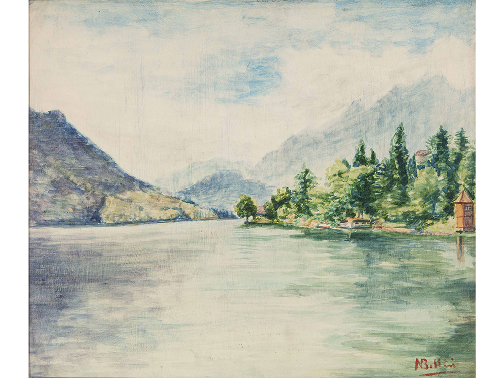 Autore non identificato (XX secolo) Paesaggio lacustre 50x60 cm Olio su faesite