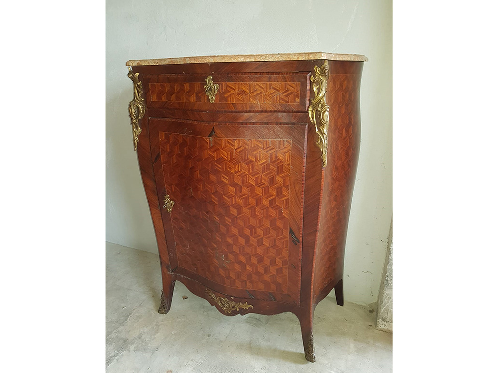 Mobiletto bombato in marqueterie primi '900 Mobiletto bombato in marqueterie...