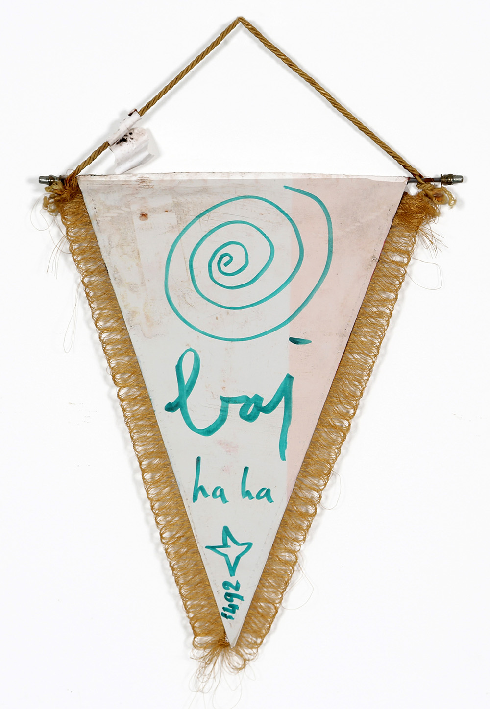 ENRICO BAJ 1924 - 2003 Senza titolo, 1992 Tecnica mista su stoffa plastificata, cm. 33 x 29 Firmato al centro ESPOSIZIONI: “Bandiere, bandierine, stendardi”, New York, Scuola New York Giu- seppe Marconi, 14 ottobre - 30 novembre 1992 “COLUMBUS DAY - ITALIA 2004 Bandiere Bandierine Stendardi”, Milano, Studio D’Ars, 5 - 18 ottobre 2004 Prov. Collezione Privata