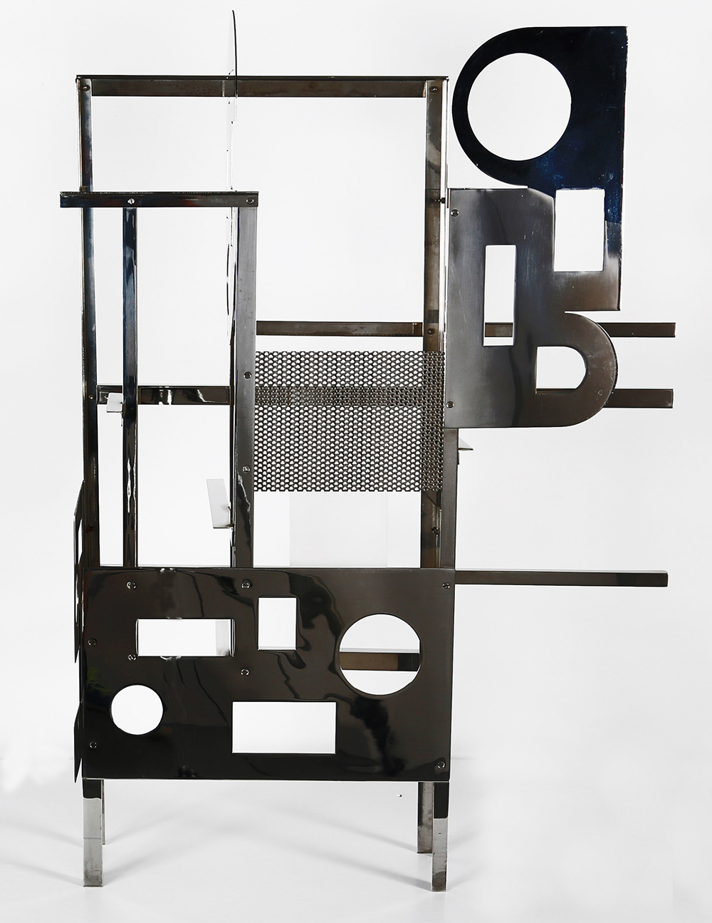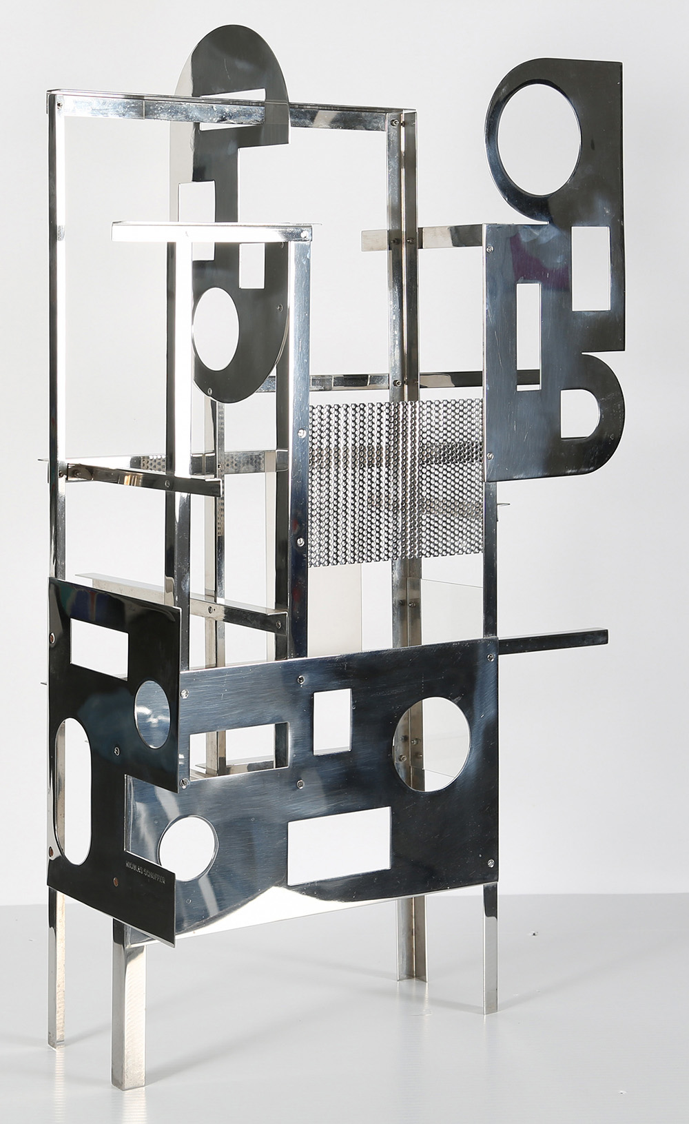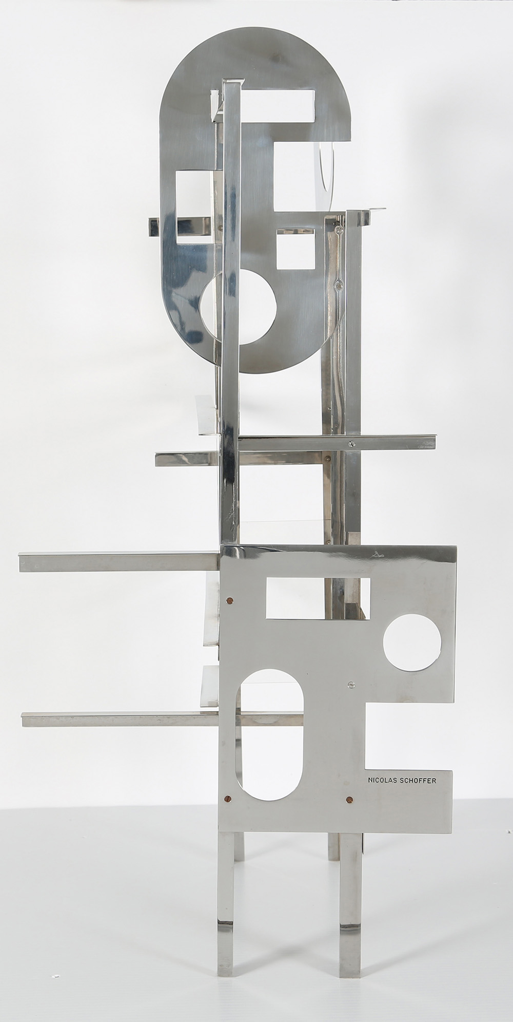 NICOLAS SCHOFFER 1912 - 1992 Lux 13 E.1.5 n.6, 1960 Scultura in acciaio inox e plexiglass, cm. 86,5 x 42 x 60 Esemplare unico Firmato e datato in basso Prov. Collezione Privata