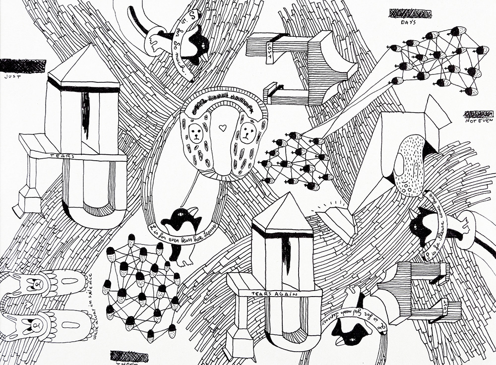 NICO VASCELLARI 1976 Tears again and again Inchiostro su carta, cm. 20 x 27 ESPOSIZIONI : “Favole Favole Favole”, Venezia, Studio Camuffo, 10-28 giugno 2002 PUBBLICAZIONI : “If I were a racing horse they would have already killed me”, Fabrica files, Grafiche Bronca, 2002, pp. 2 - 3 Prov. Collezione Privata