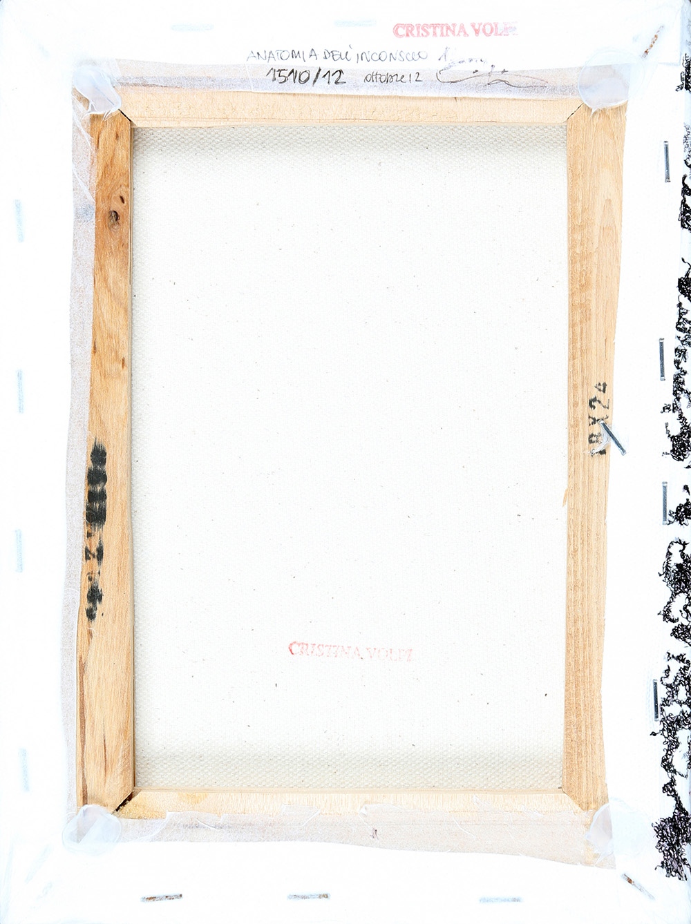 CRISTINA VOLPI 1975 Anatomia dell’inconscio, 2012 Penna e collage di carta velina su tela, cm. 24 x 18 Firmato e datato sul retro Timbro dell’artista sul retro Prov. Collezione Privata