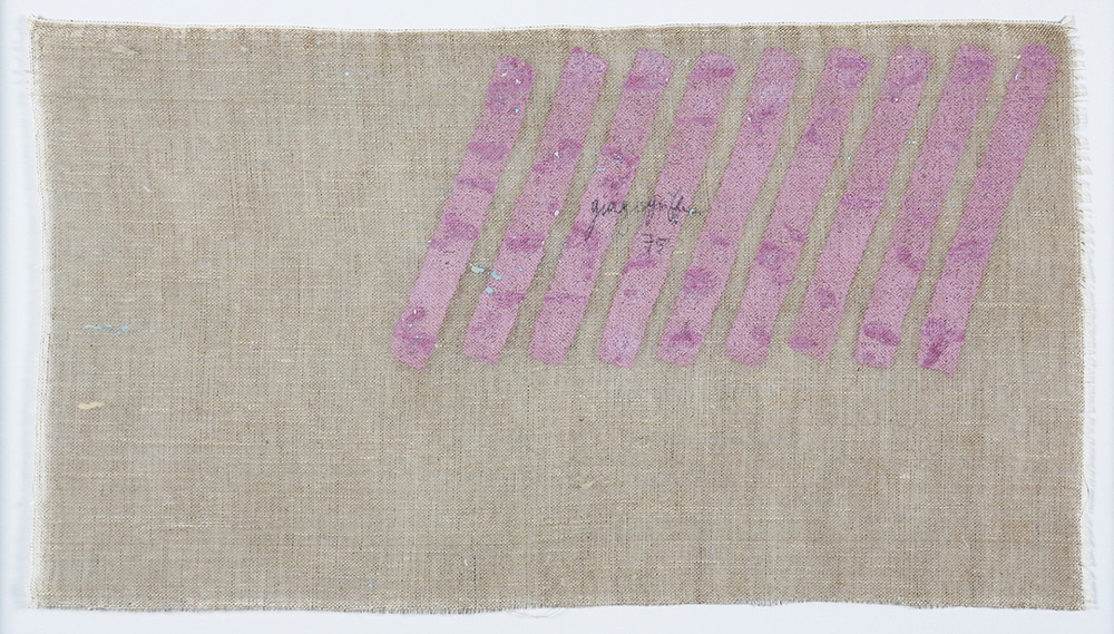 GIORGIO GRIFFA 1936 Obliquo, 1975 Acrilico su tela, cm. 39 x 70 Firmato e datato sul retro Certificato di Autenticità a cura dell’Archivio Giorgio Griffa PUBBLICAZIONI: “Giorgio Griffa - Leggerezza di un segno”, catalogo mostra Gian Marco Casini Gallery, Livorno Prov. Collezione Privata