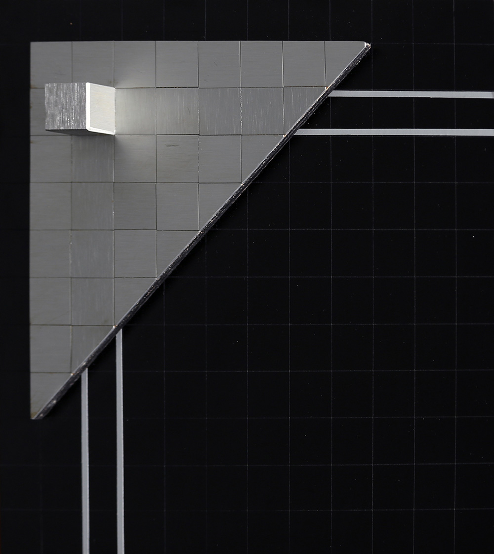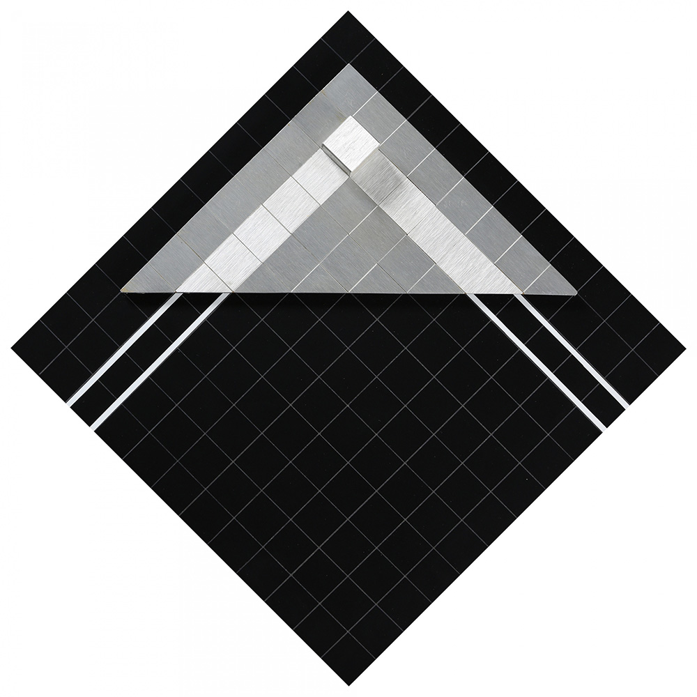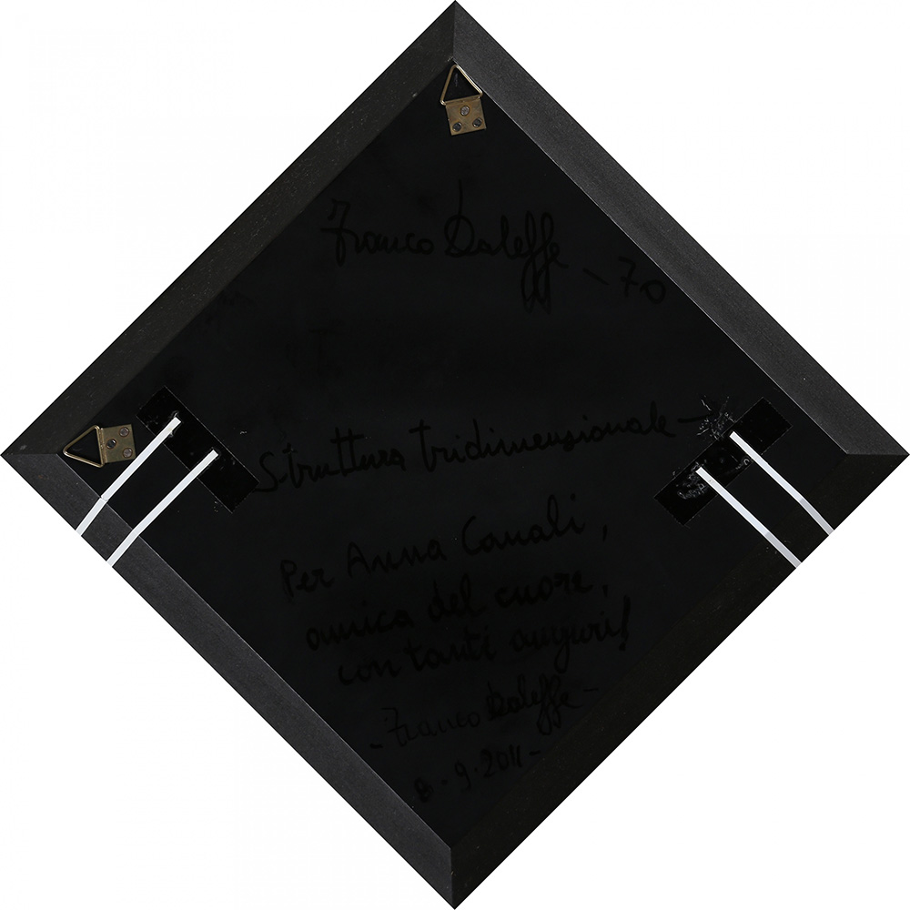 FRANCO DALEFFE 1933 - 2014 Struttura tridimensionale, 1970 Tavola incisa e rilievi di alluminio su tavola, cm. 30 x 30 x 4, diagonale cm. 42 Firmato e datato sul retro Dedica dell’artista a Anna Canali sul retro Prov. Collezione Privata
