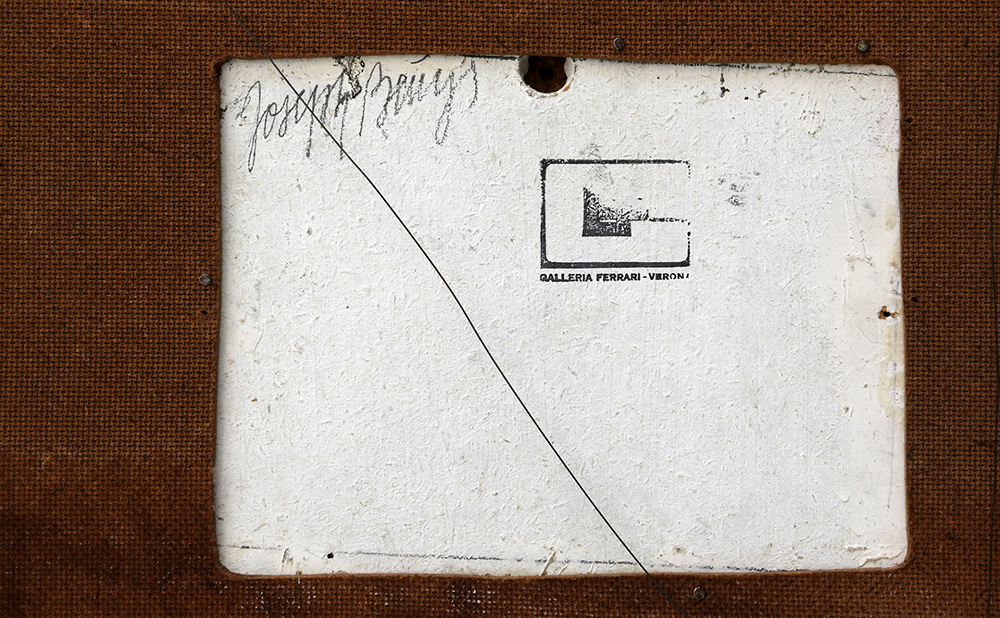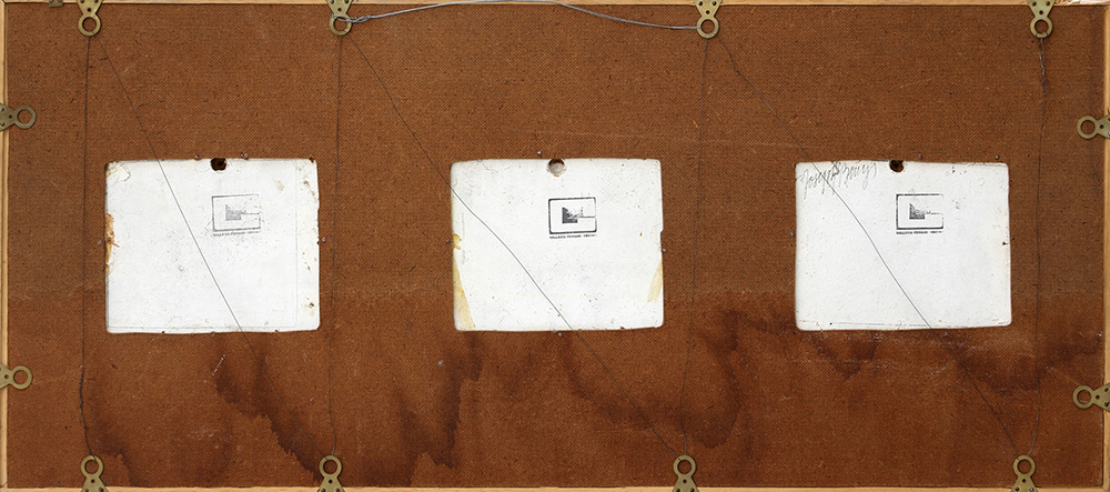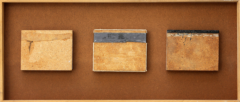 JOSEPH BEUYS 1921 - 1986 Senza titolo, anni ’70 Assemblaggio, piombo, feltro, cera e pittura su tre formelle di compensato applicate su tavola, cm. 33,5 x 79 x 2,5 Firmato sul fronte e sul retro Timbro Galleria Ferrari, Verona sul retro Prov. Collezione Privata