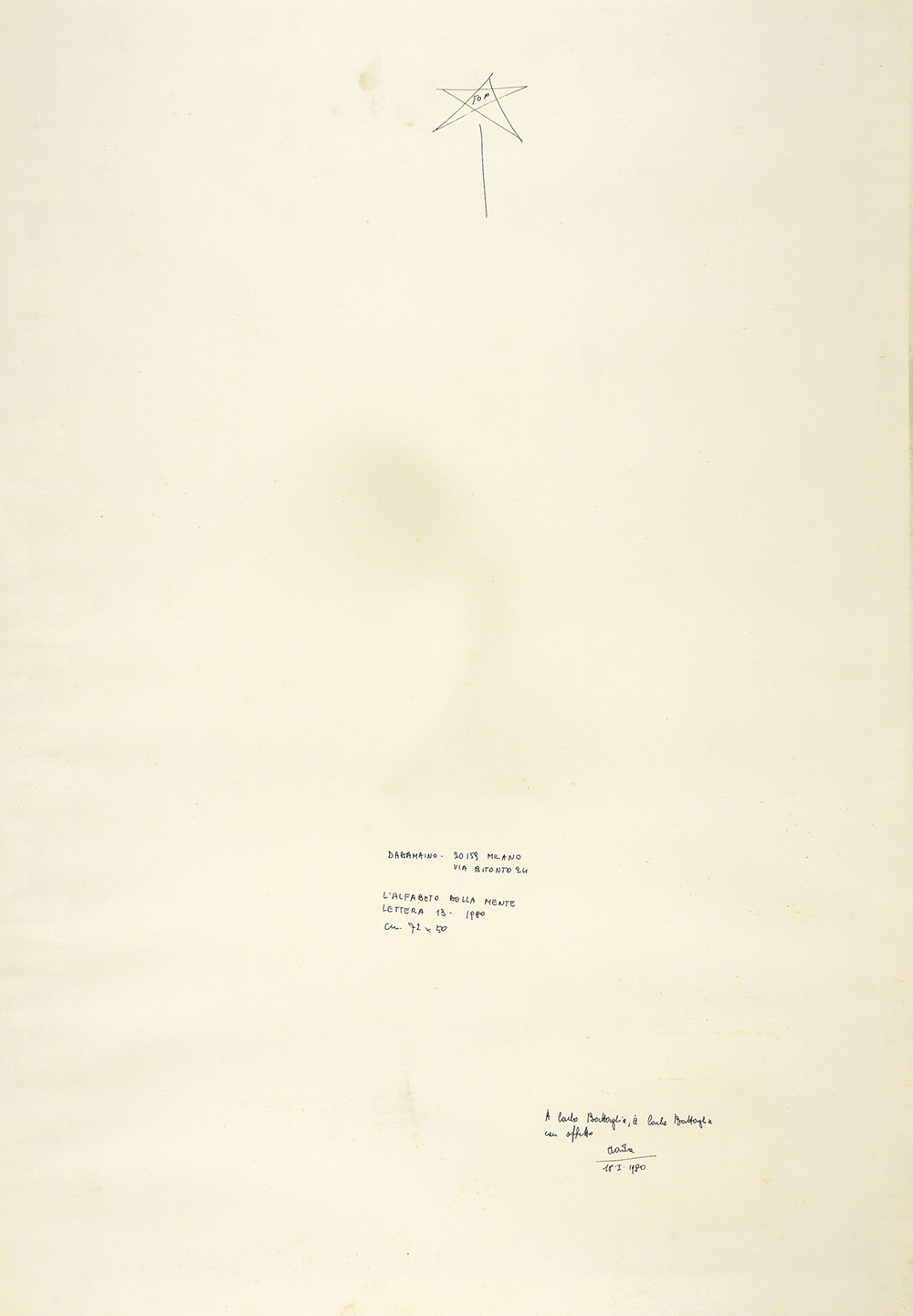 DADAMAINO 1930 - 2004 L’alfabeto della mente lettera 13, 1980 Inchiostro su carta, cm. 73,5 x 51 Firmato e datato sul retro Dedica dell’artista a Carlo Battaglia, sul retro Prov. Collezione Carla Panicali di Montaldo, Galleria Marlborough, Roma Prov. Collezione Privata