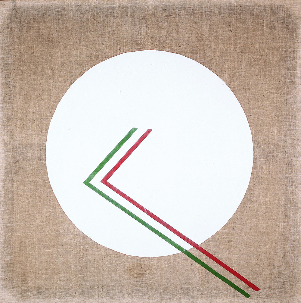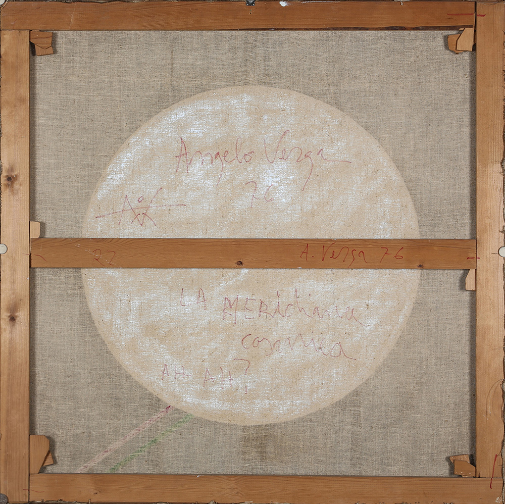 ANGELO VERGA 1933 - 1999 La meridiana cosmica ah ah?, 1976 Acrilico su tela, cm. 100 x 100 Firmato e datato sul retro Prov. Collezione Privata