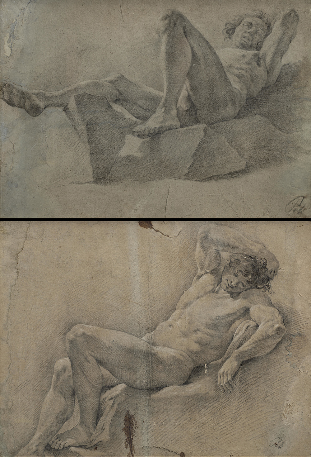I due disegni presentano la medesima iscrizione indistinta in basso a destra