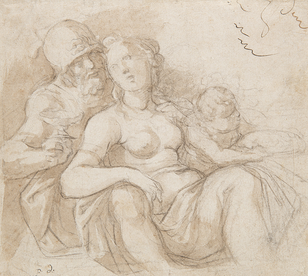 Scuola italiana del secolo XVIIMarte e VenereMatita nera e acquerello su...