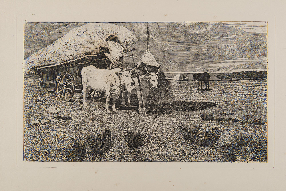 Giovanni Fattori (Livorno 1825 - Firenze 1908)Buoi al carroAcquaforte su...